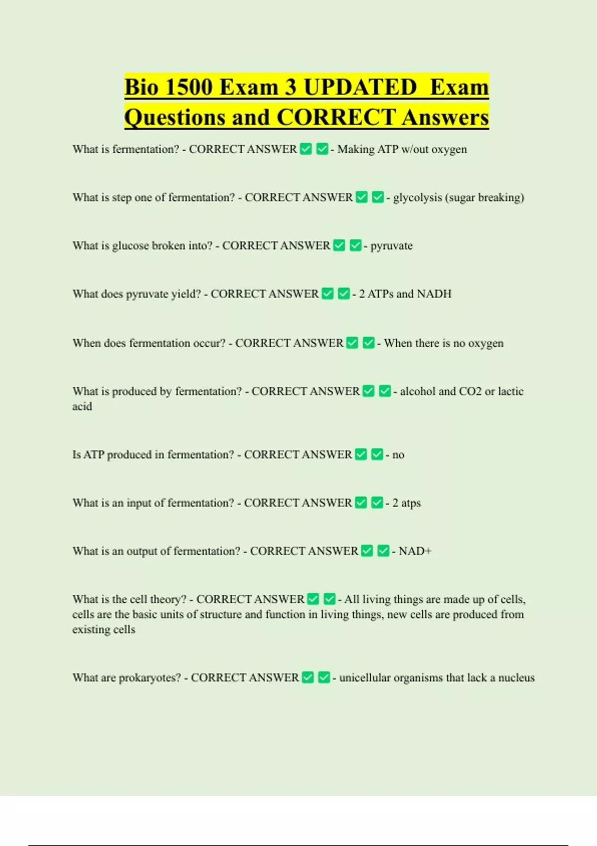 What does pyruvate yield? - CORRECT ANSWER - 2 ATPs and NADH