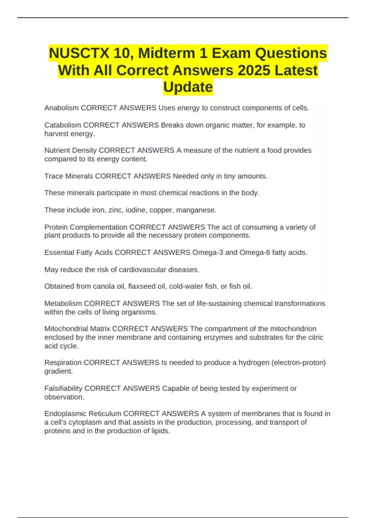 Essential Fatty Acids CORRECT ANSWERS Omega-3 and Omega-6 fatty acids.