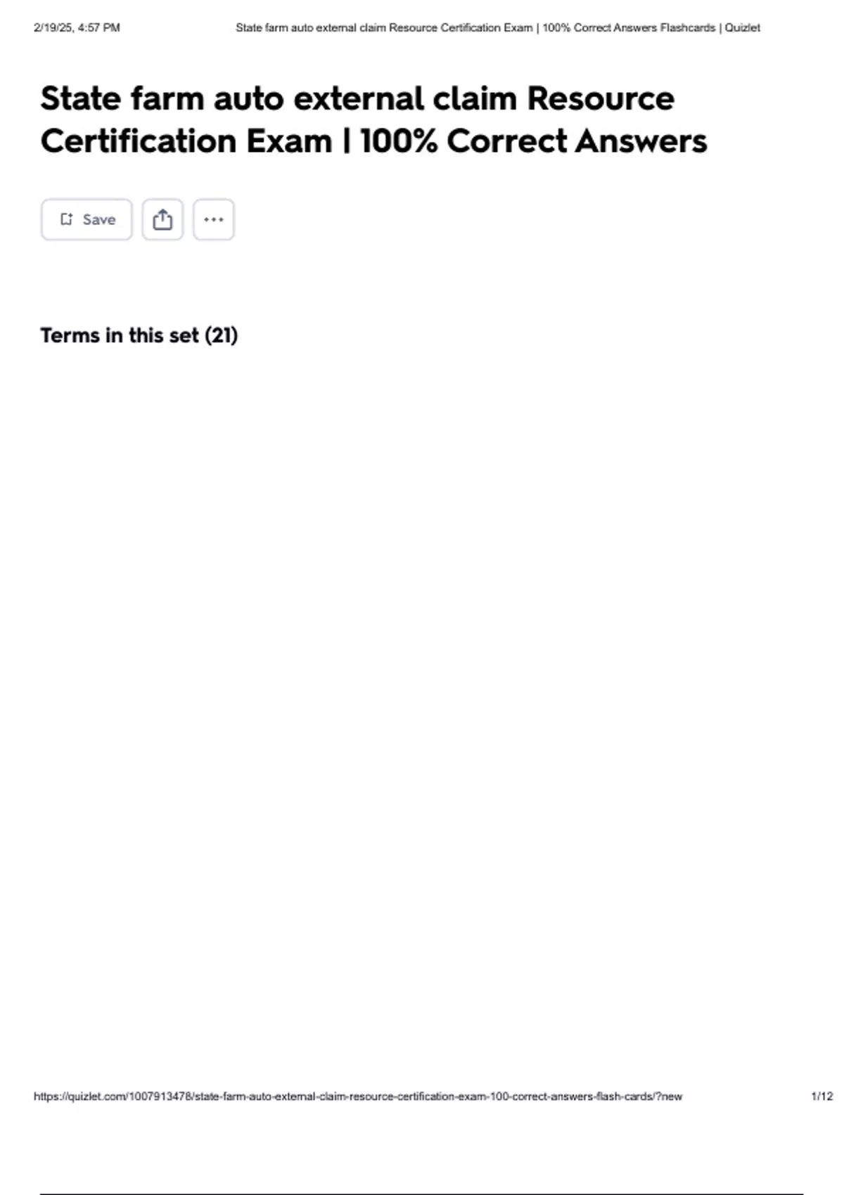 , 2/19/25, 4:57 PM State farm auto external claim Resource Certification Exam | 100% Correct Answers Flashcards | Quizlet