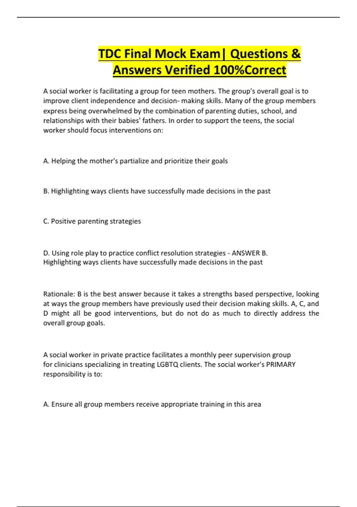 TDC Final Mock Exam| Questions &