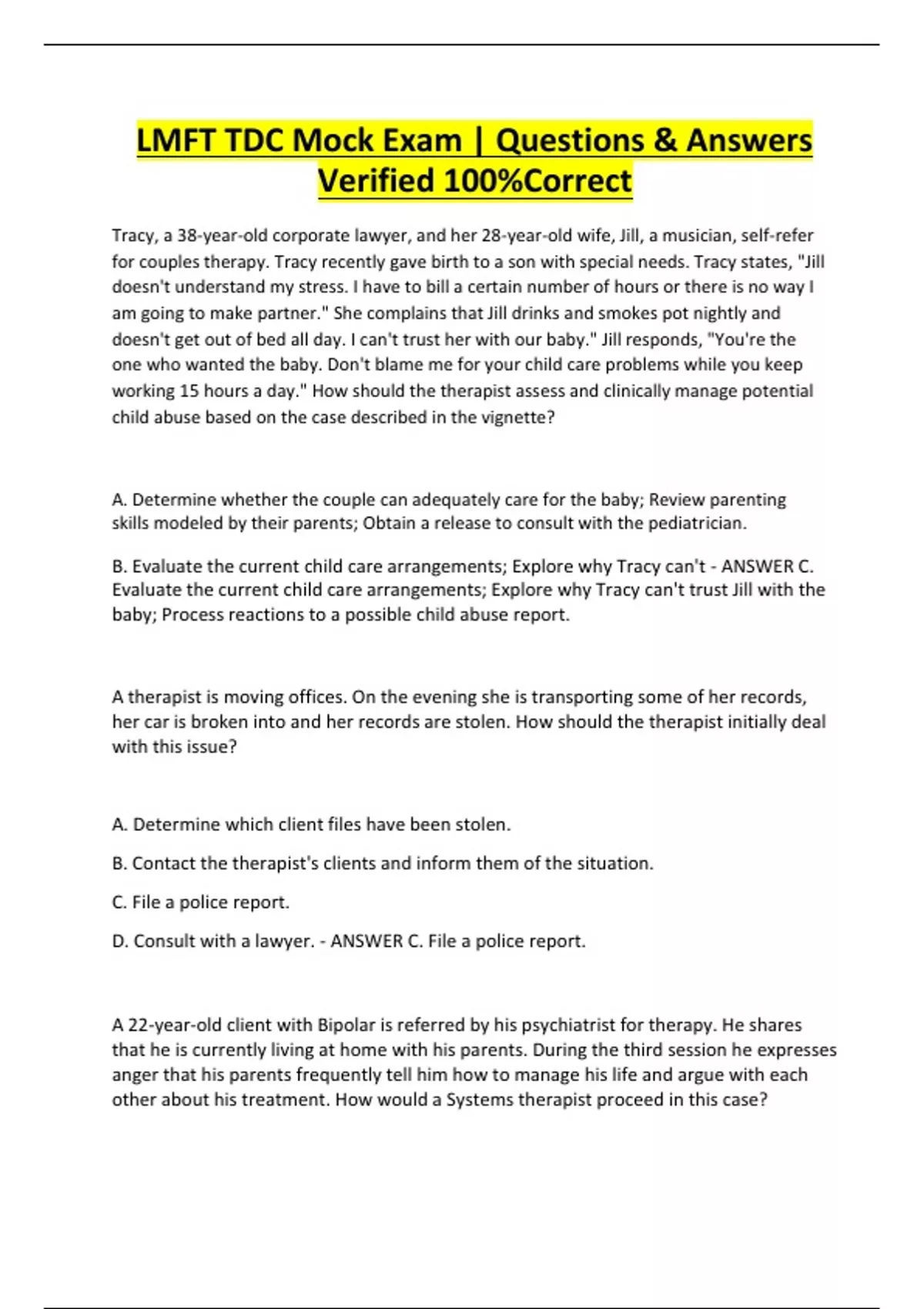 LMFT TDC Mock Exam | Questions & Answers Verified 100%Correct