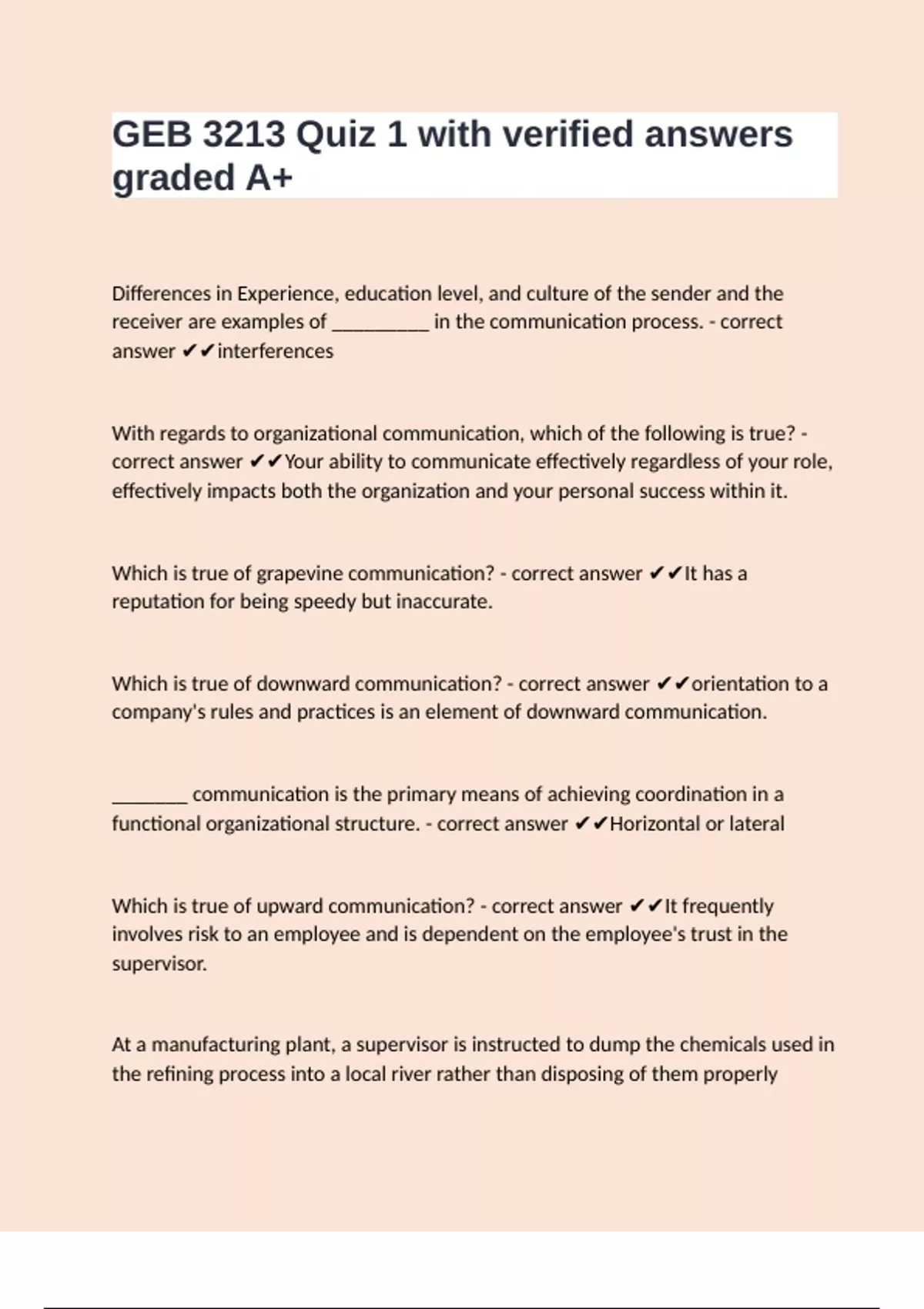 Which is true of upward communication? - correct answer ✔✔It frequently