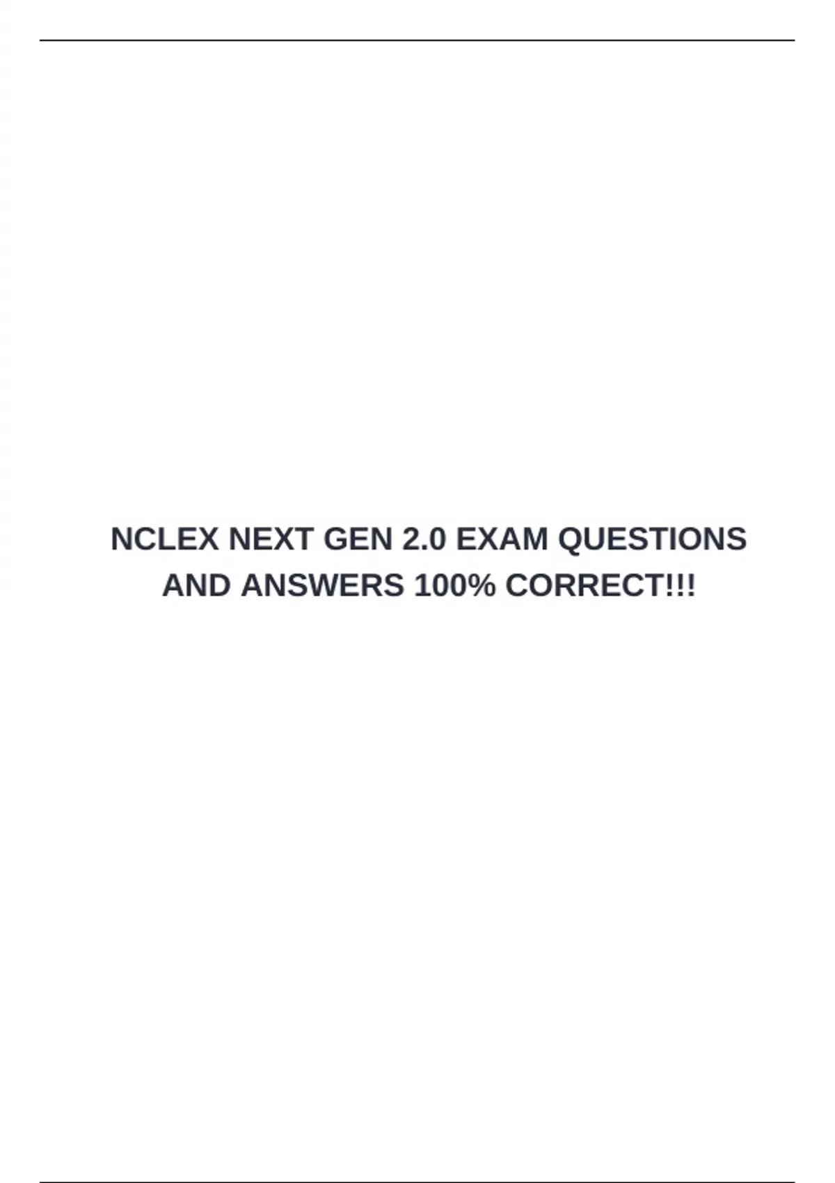 NCLEX NEXT GEN 2.0 EXAM QUESTIONS AND ANSWERS 100% CORRECT!!!