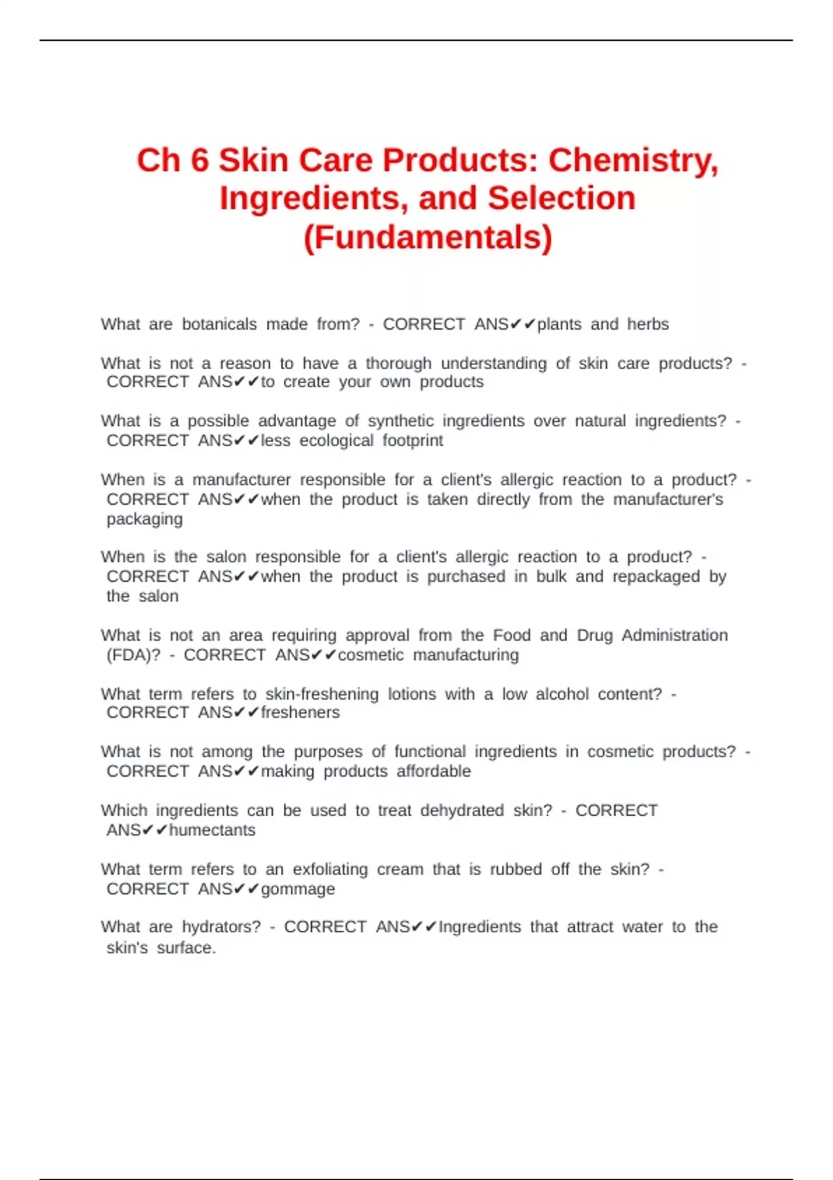 Which cingredients ccan cbe cused cto ctreat cdehydrated cskin? c- cCORRECT