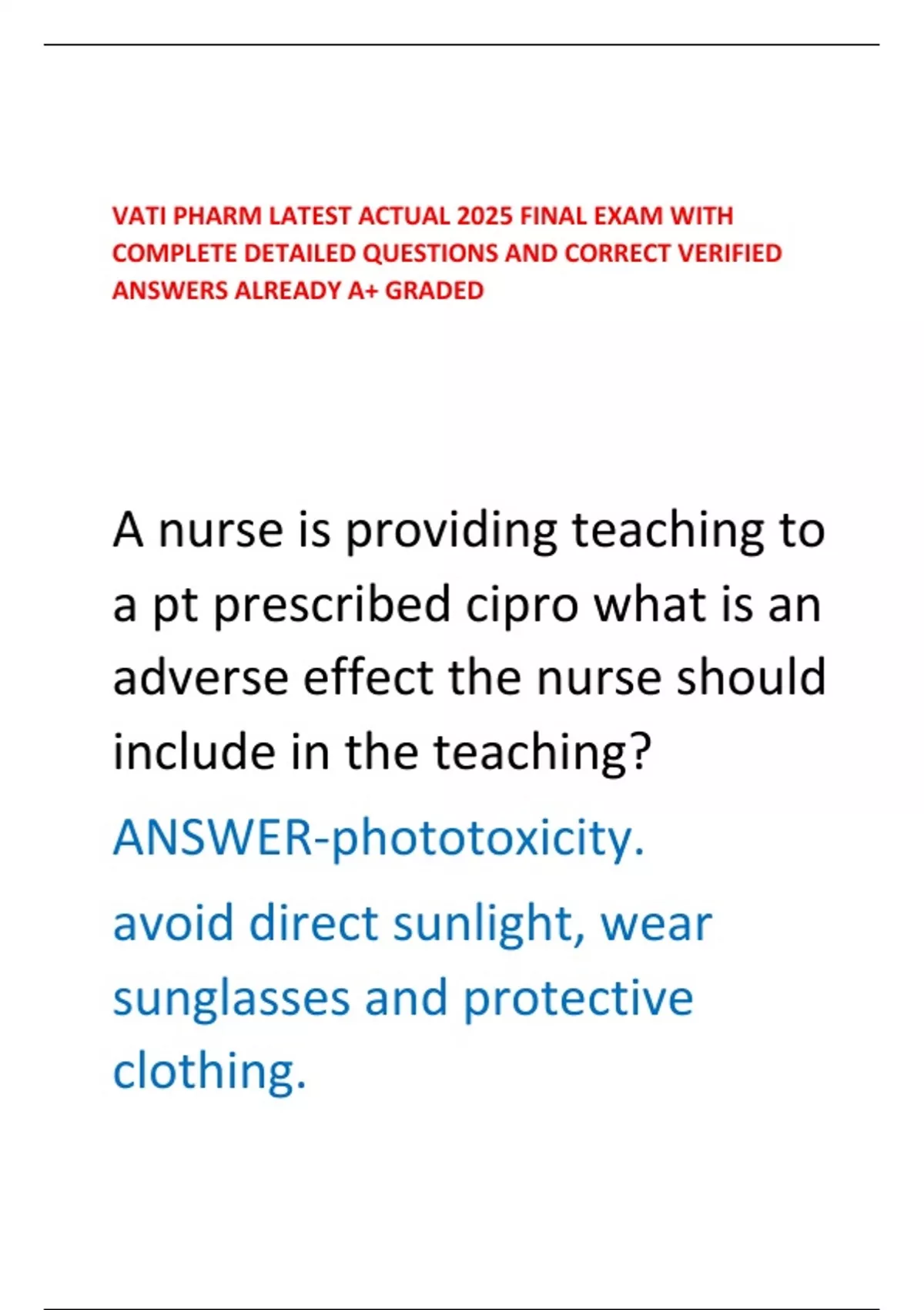VATI PHARM LATEST ACTUAL 2025 FINAL EXAM WITH