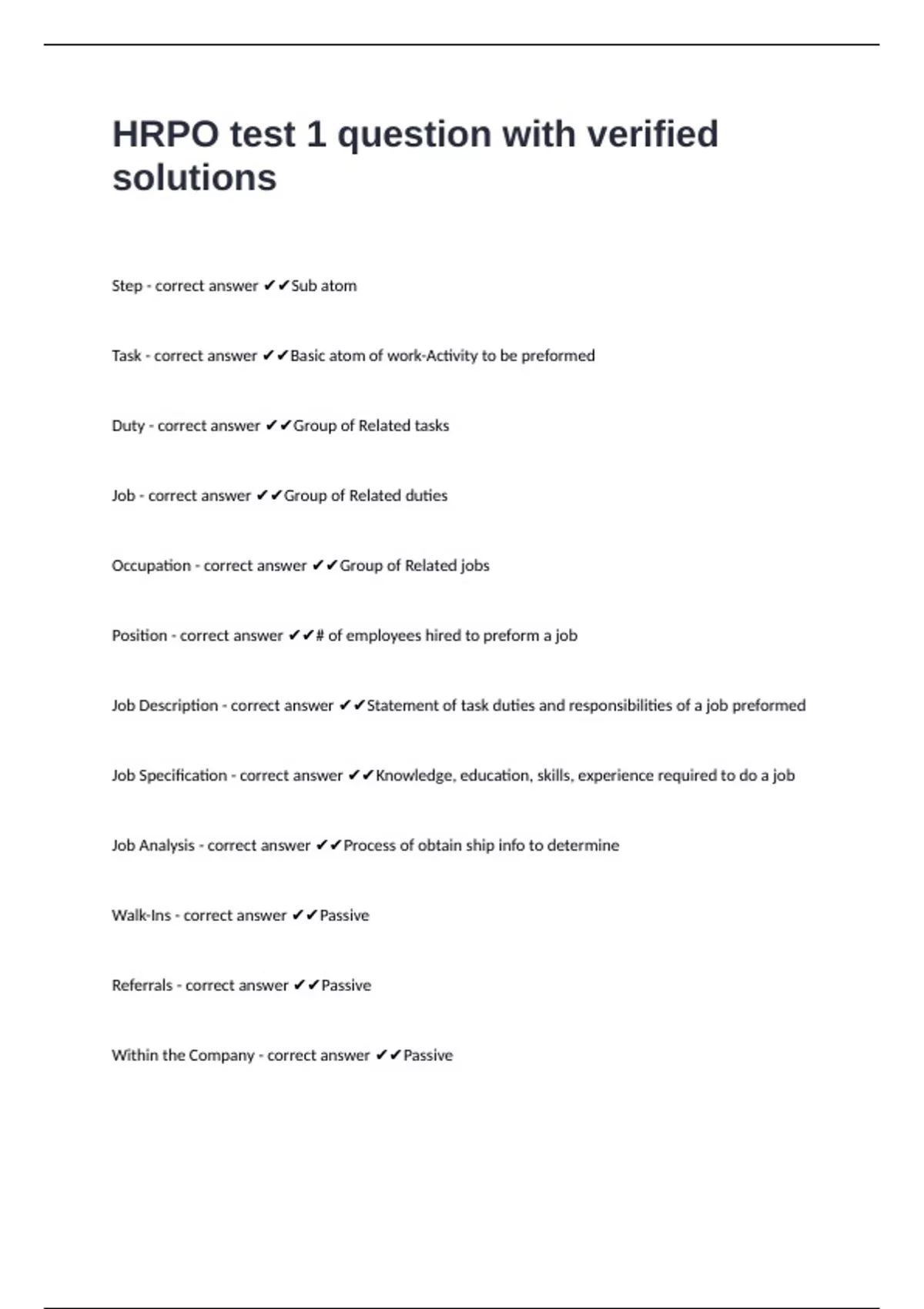 HRPO test 1 question with verified solutions