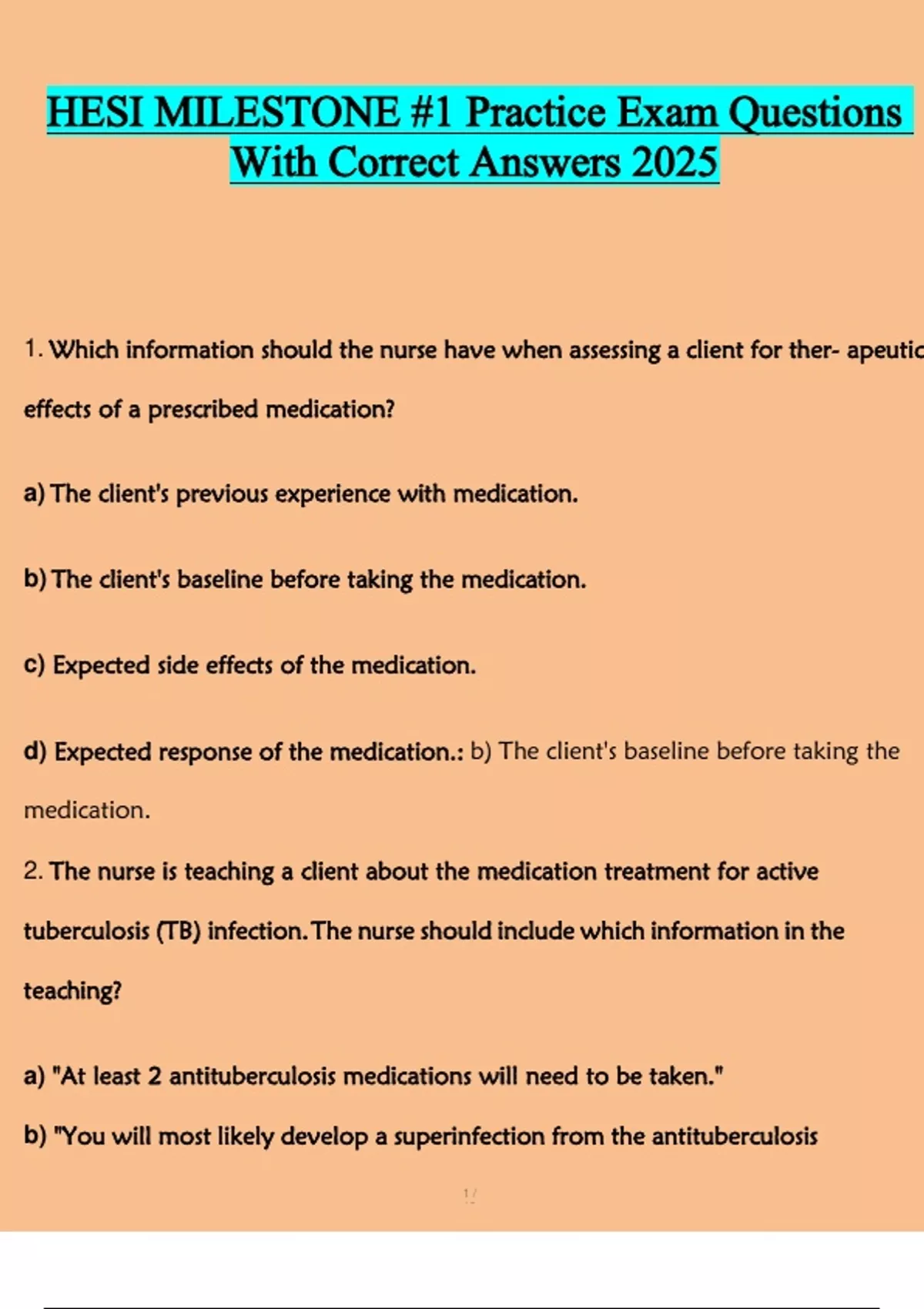 1. Which information should the nurse have when assessing a client for ther- apeutic