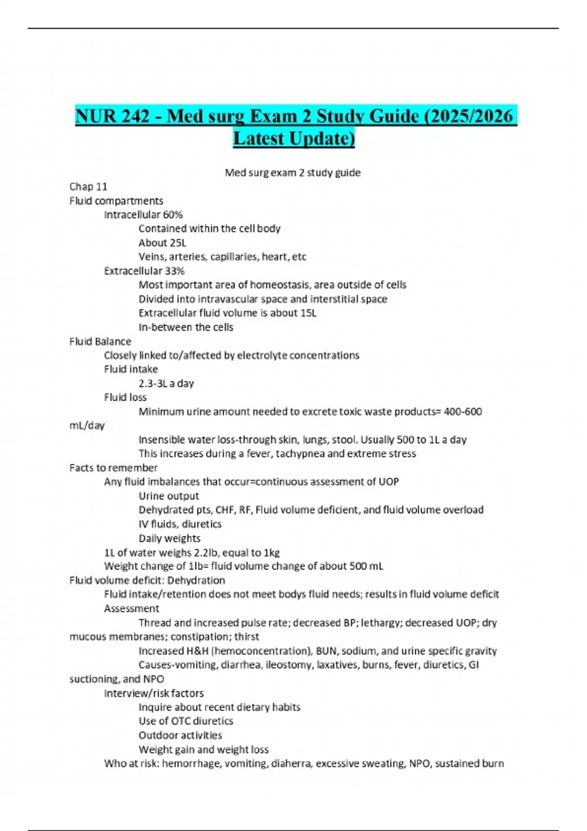 NUR 242 - Med surg Exam 2 Study Guide (2025/2026 Latest Update)