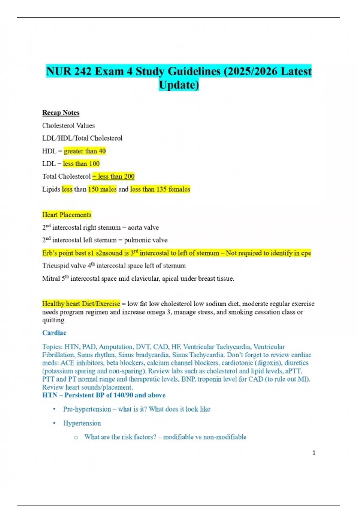 NUR 242 Exam 4 Study Guidelines (2025/2026 Latest Update)
