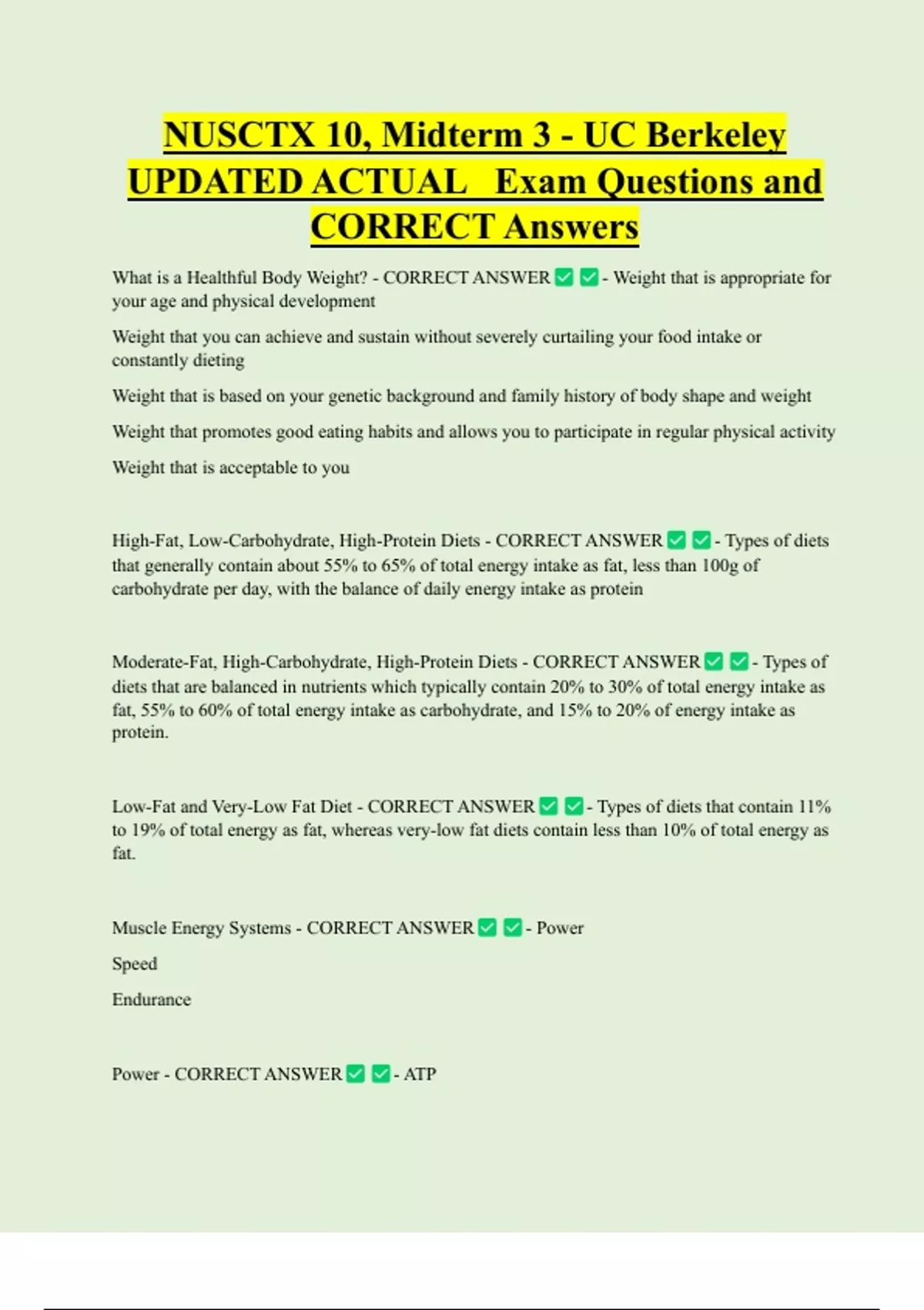 NUSCTX 10, Midterm 3 - UC Berkeley UPDATED ACTUAL Exam Questions and CORRECT Answers