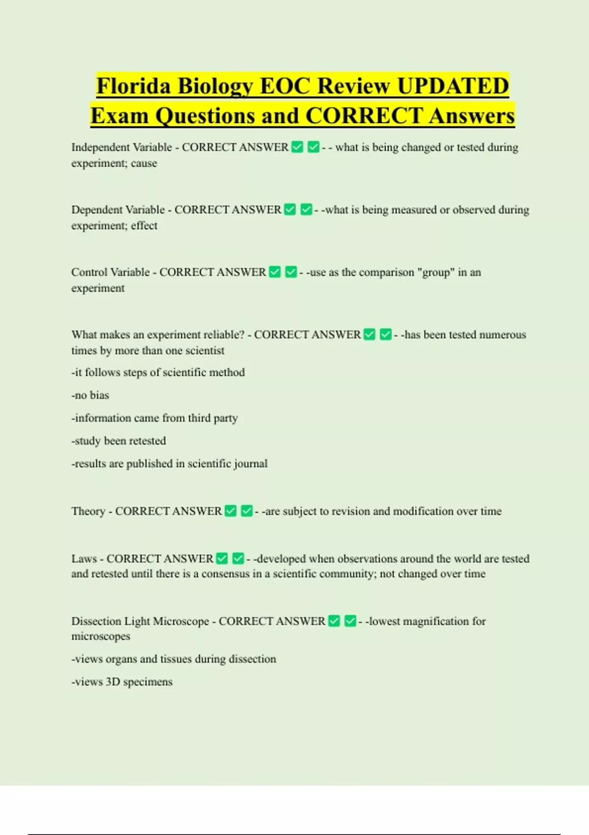 What makes an experiment reliable? - CORRECT ANSWER - -has been tested numerous