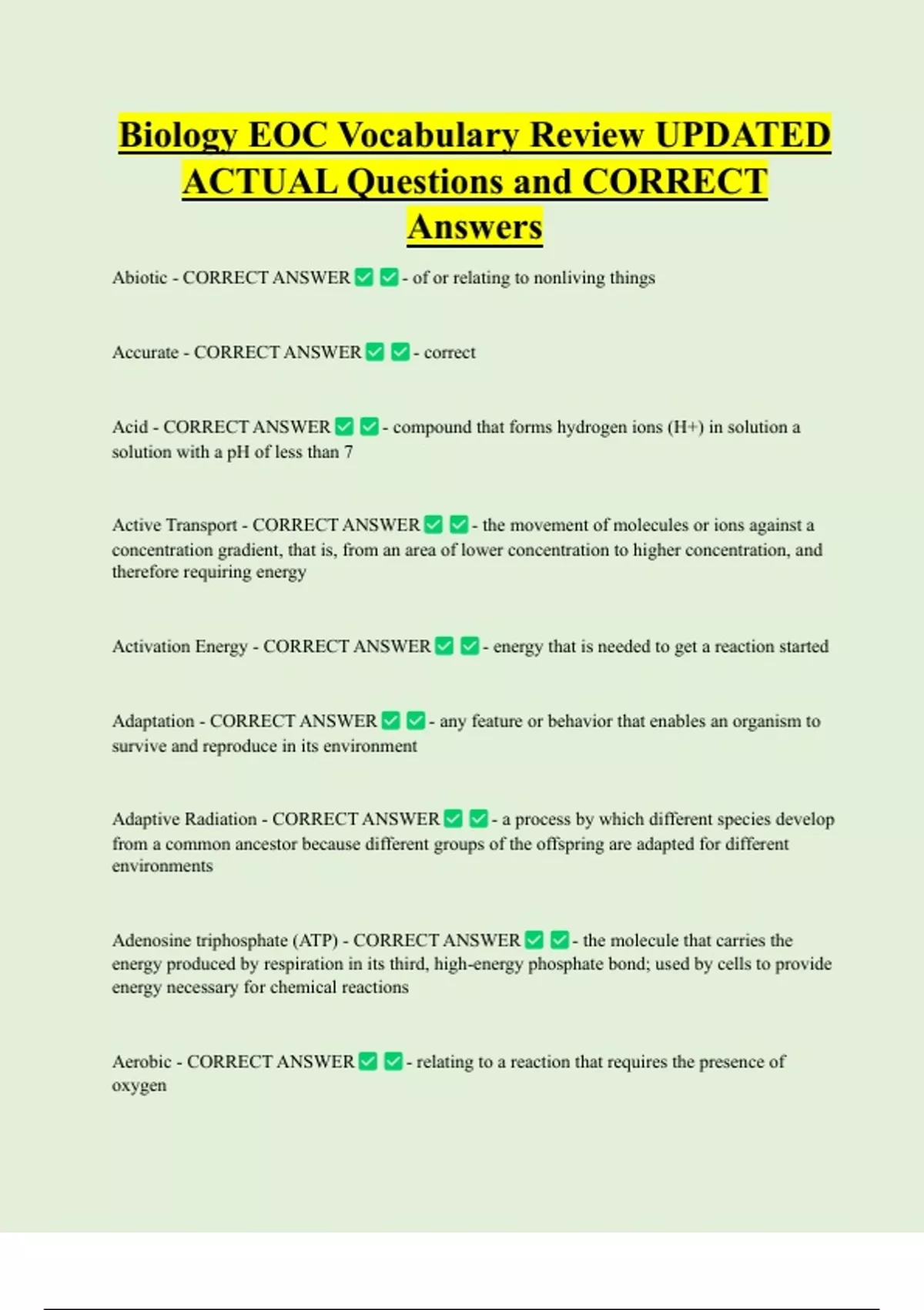 Abiotic - CORRECT ANSWER - of or relating to nonliving things