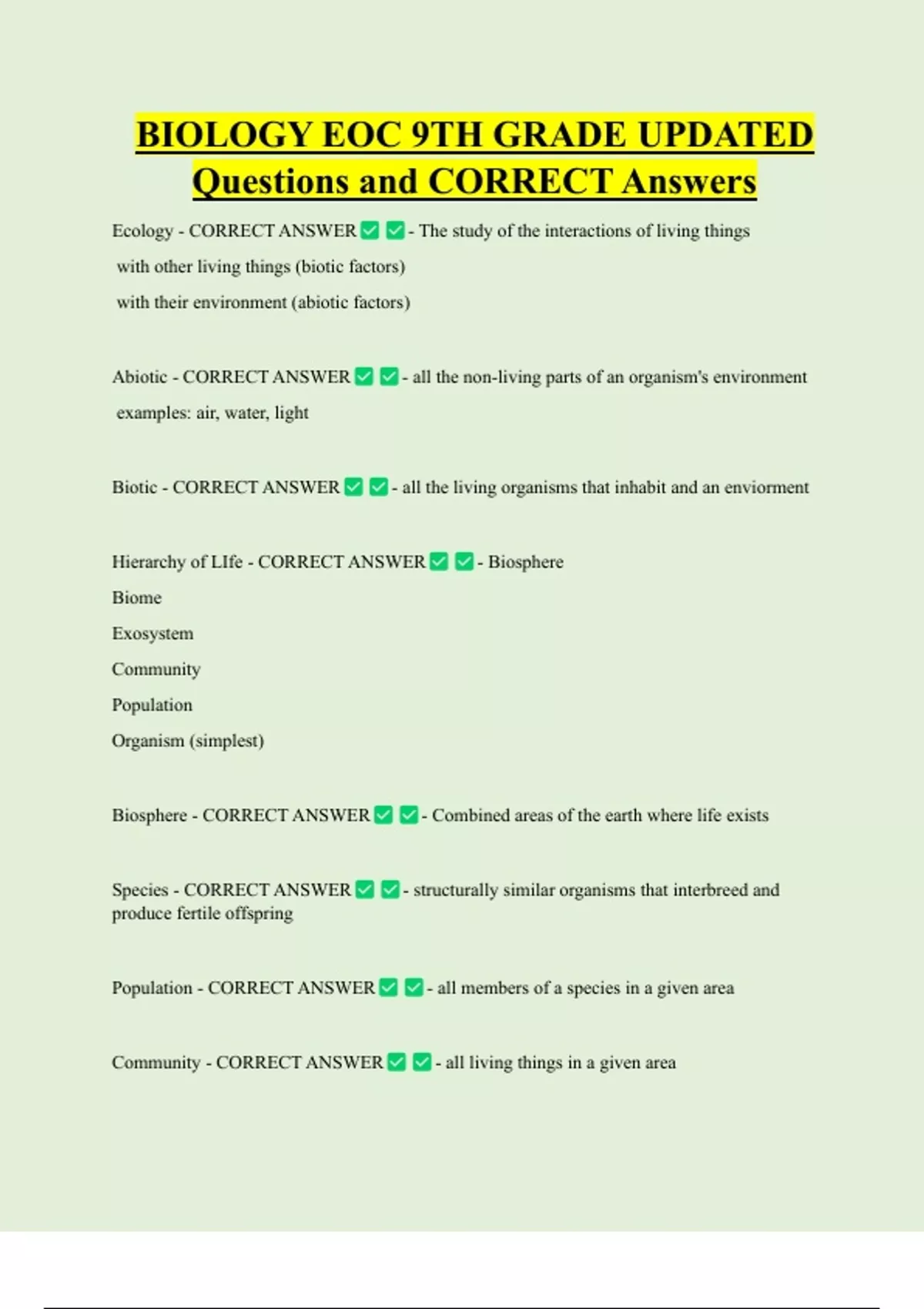 Hierarchy of LIfe - CORRECT ANSWER - Biosphere