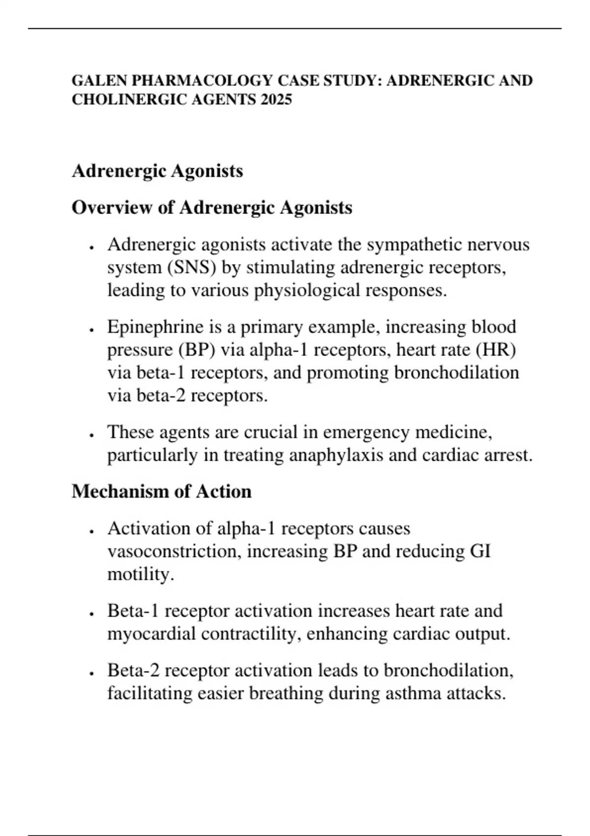 GALEN PHARMACOLOGY CASE STUDY: ADRENERGIC AND CHOLINERGIC AGENTS 2025