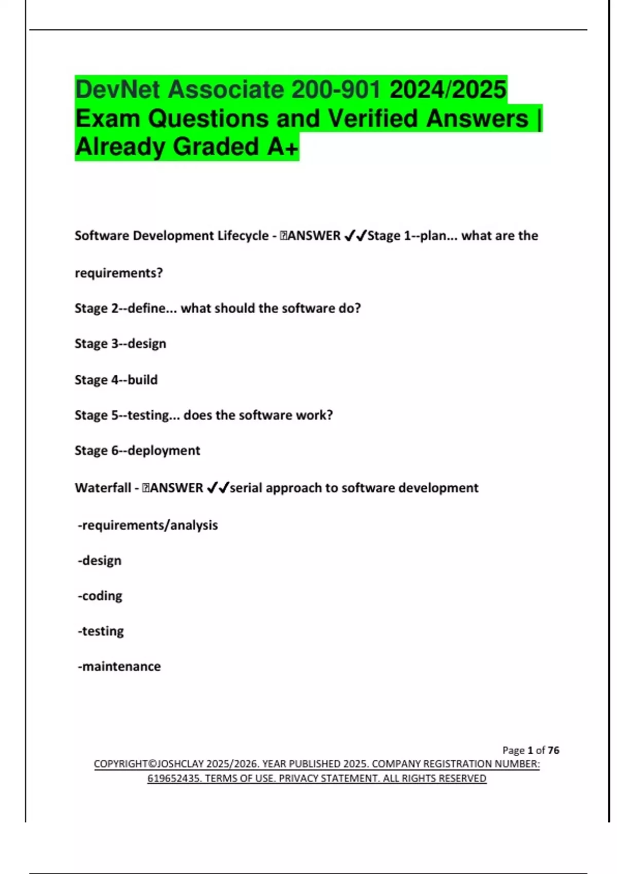 DevNet Associate /2025 Exam Questions and Verified Answers | Already Graded A+ Software Development Lifecycle -