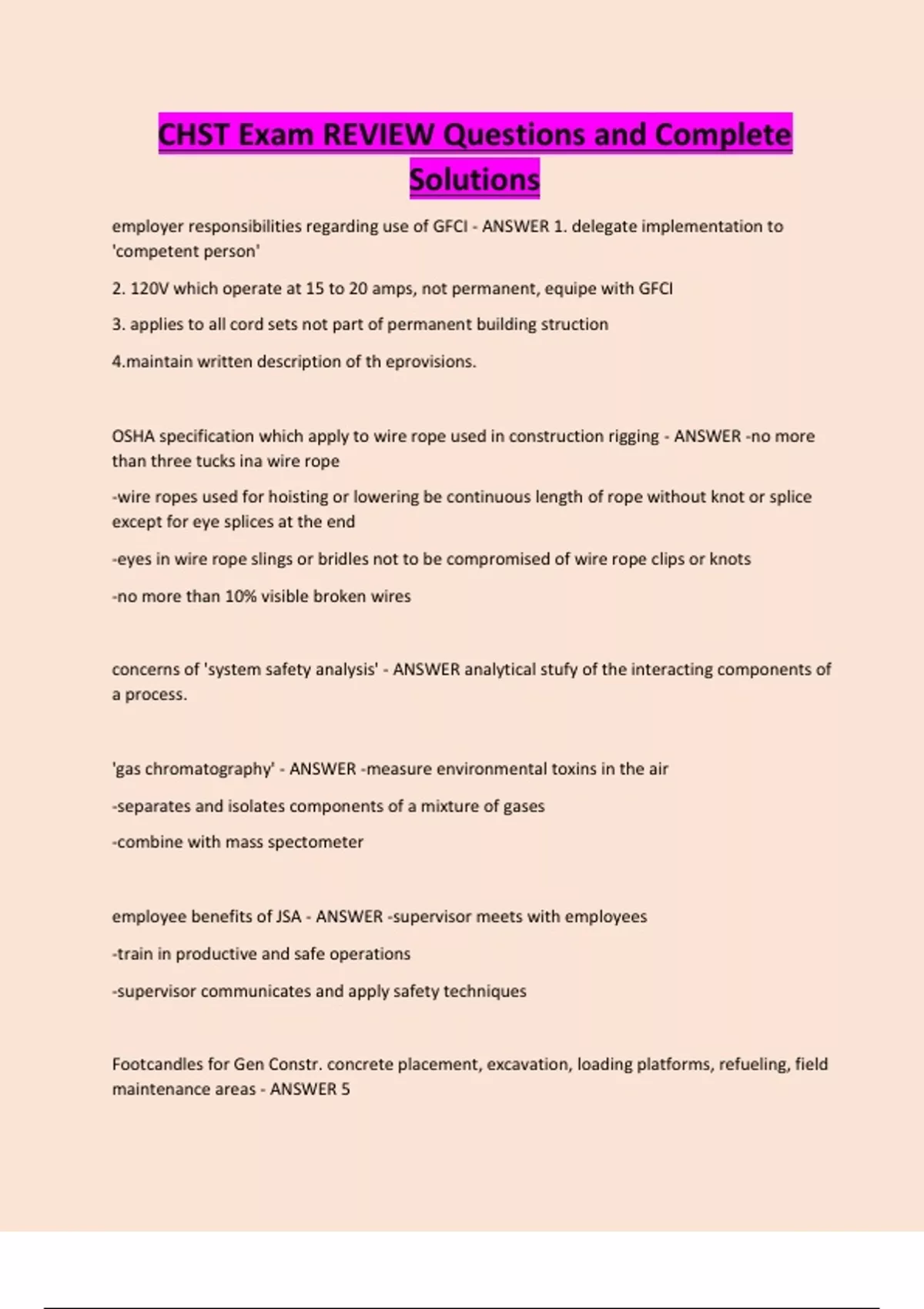 CHST Exam REVIEW Questions and Complete