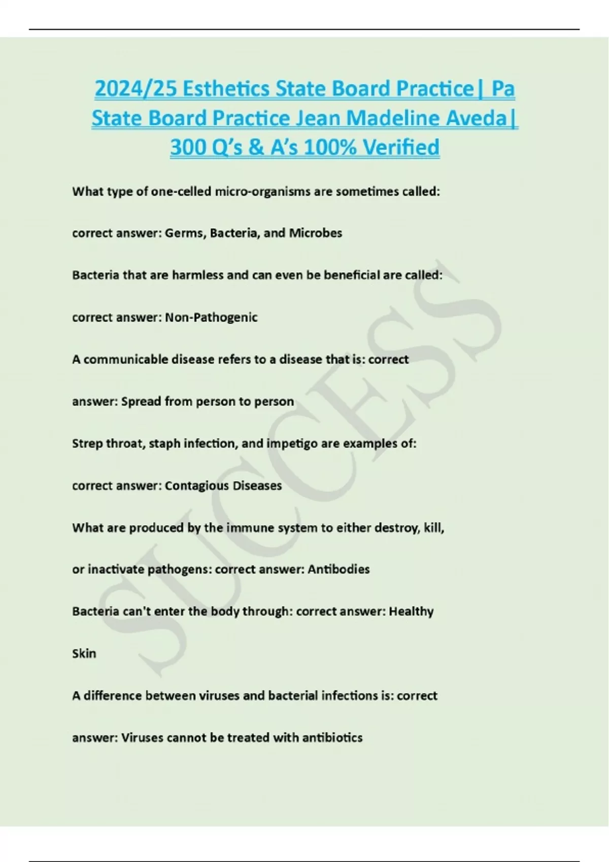 2024/25 Esthetics State Board Practice| Pa State Board Practice Jean Madeline Aveda| 300 Q’s & A’s 100% Verified by Experts