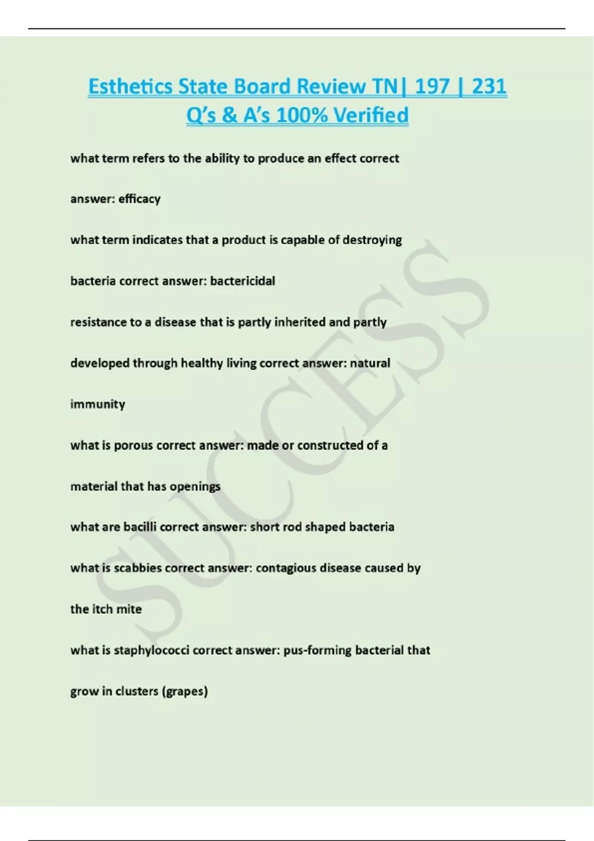 Esthetics State Board Review TN| 197 | 231 Questions & Answers 100% Solved