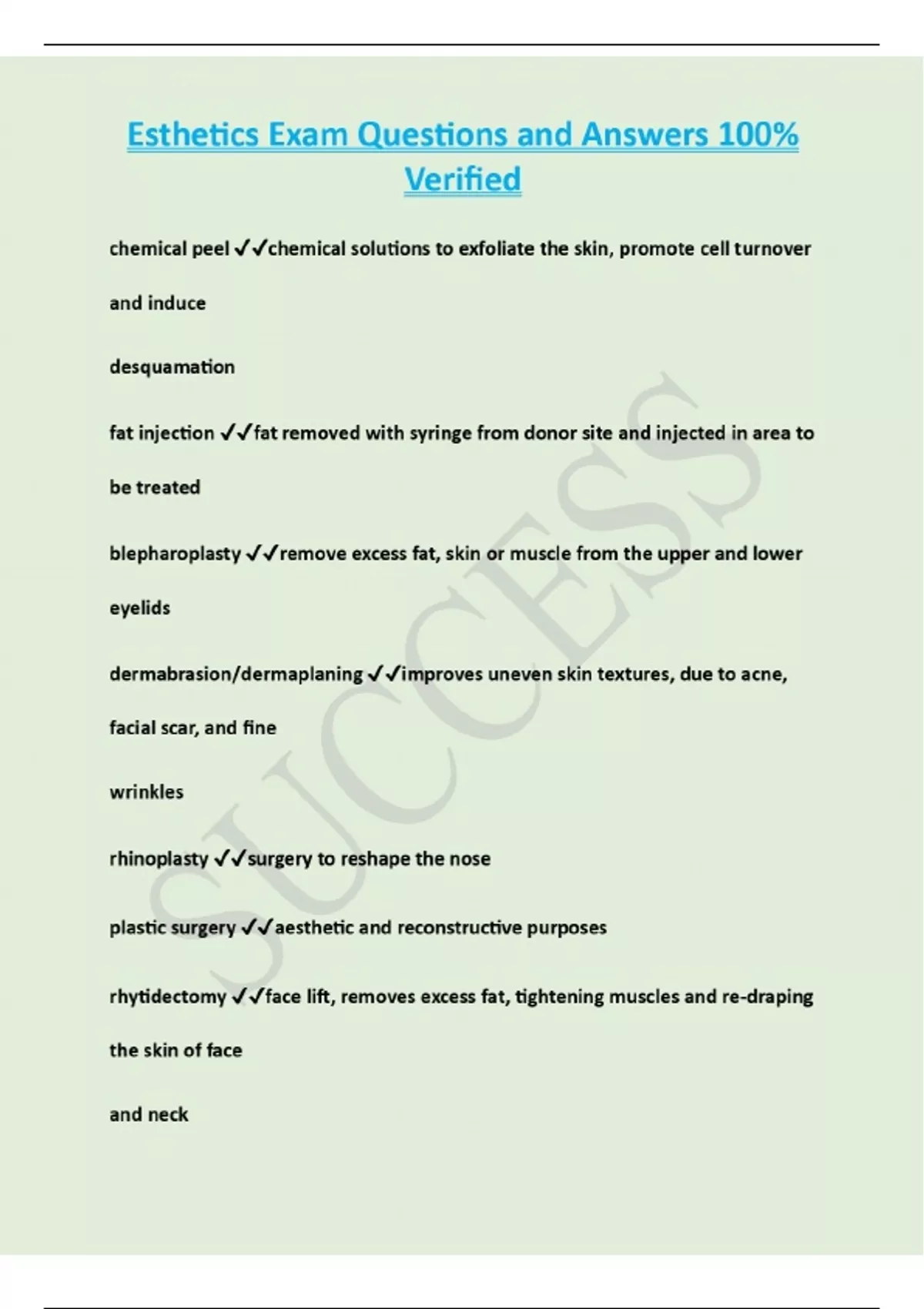 Esthetics Exam Questions and Answers 100% Verified by Experts