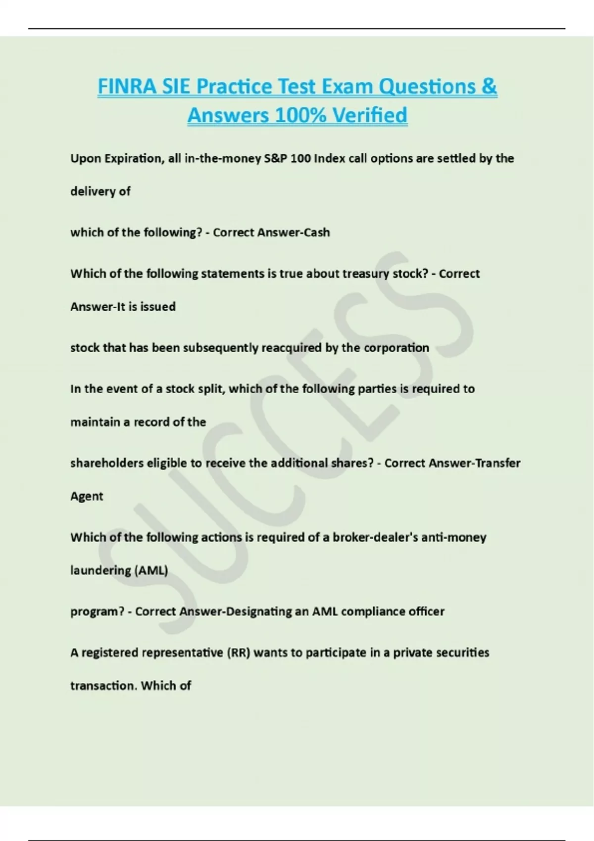 FINRA SIE Practice Test Exam Questions & Answers Verified by Experts
