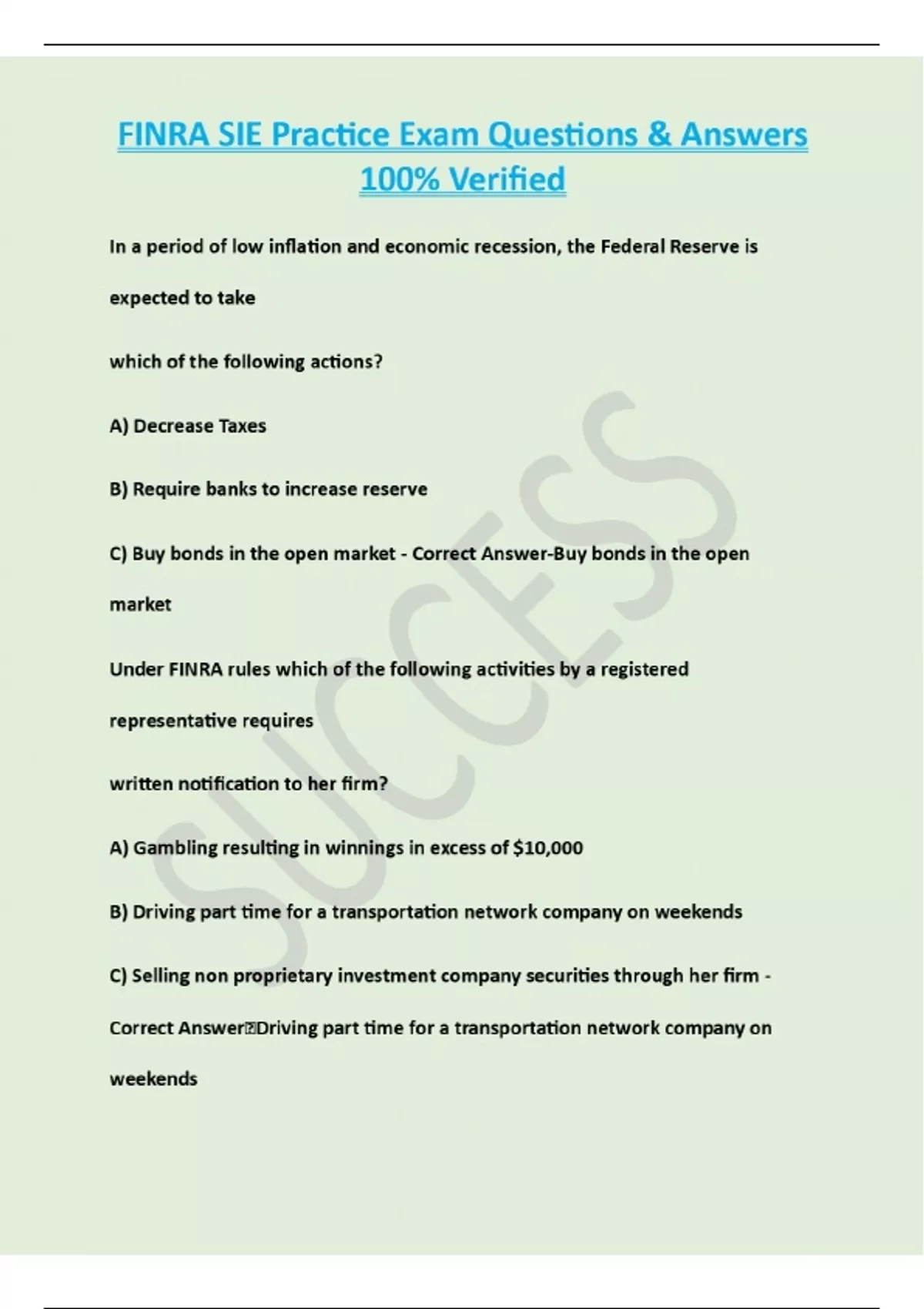 FINRA SIE Practice Exam Questions & Answers 100% Correct