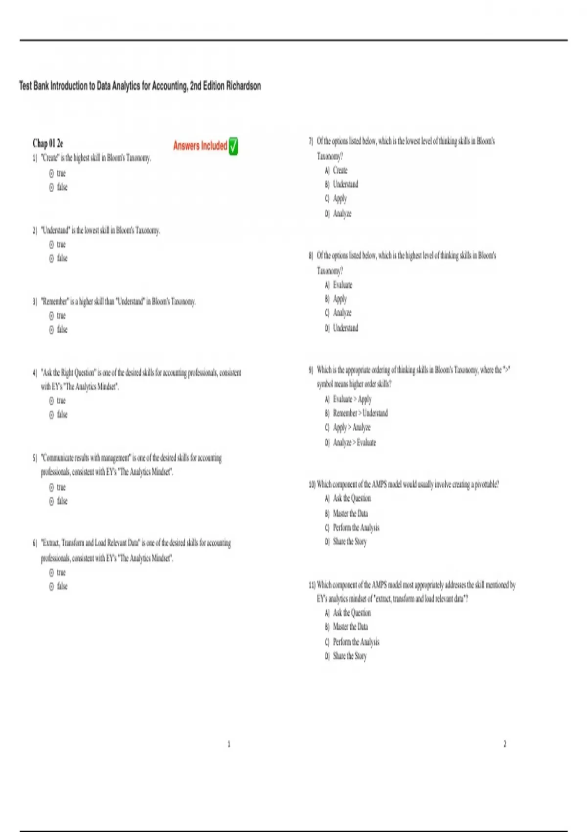 Test Bank Introduction to Data Analytics for Accounting, 2nd Edition Richardson