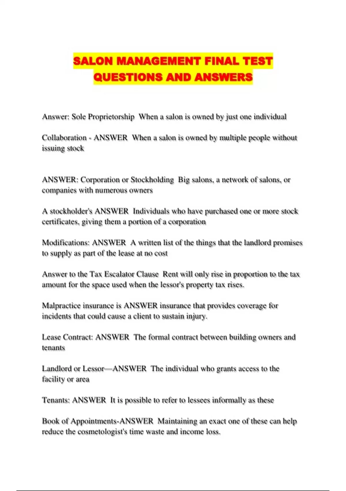 SALON MANAGEMENT FINAL TEST QUESTIONS AND ANSWERS...