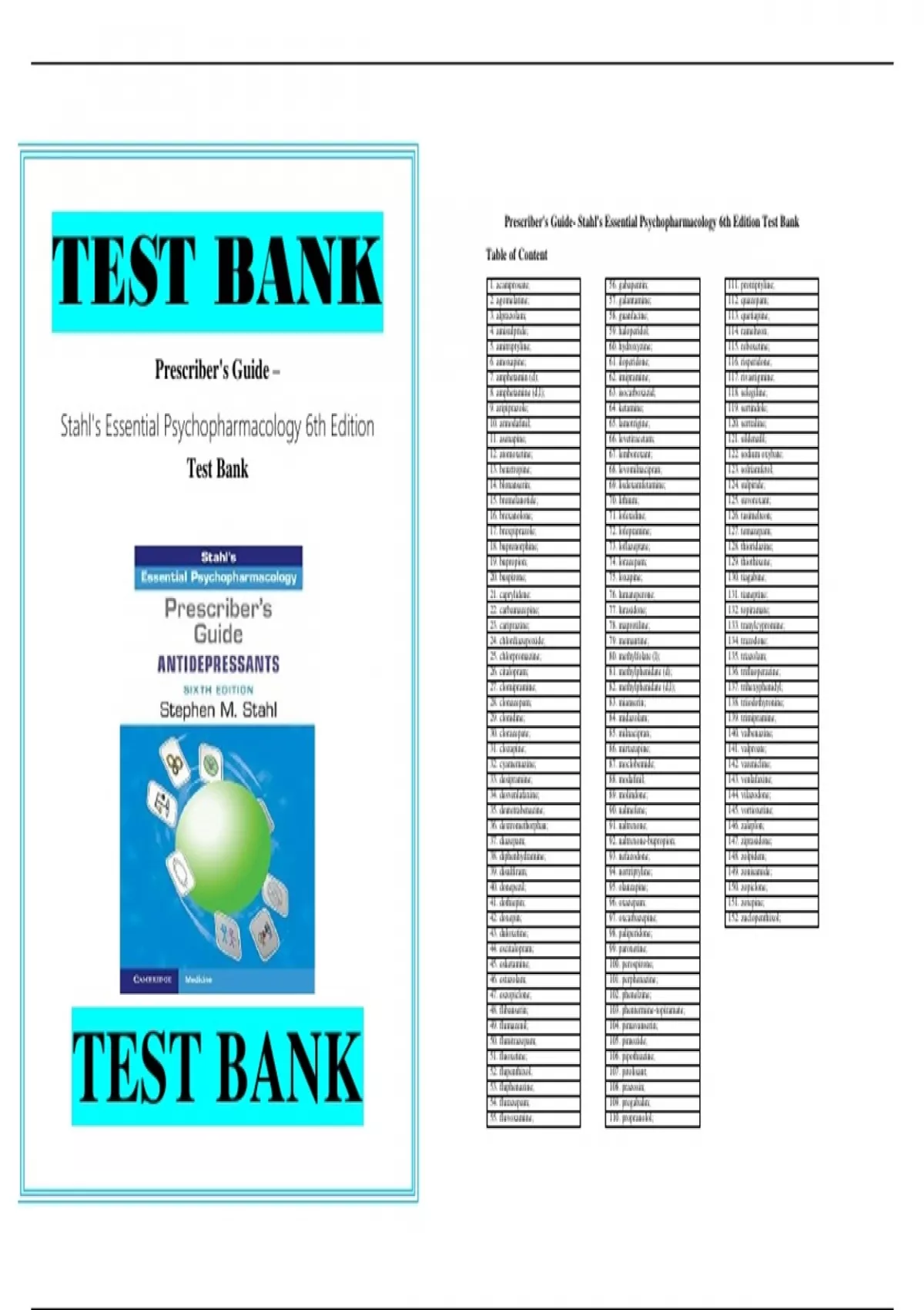 Testbank Prescriber's Guide- Stahl's Essential Psychopharmacology 6th Edition