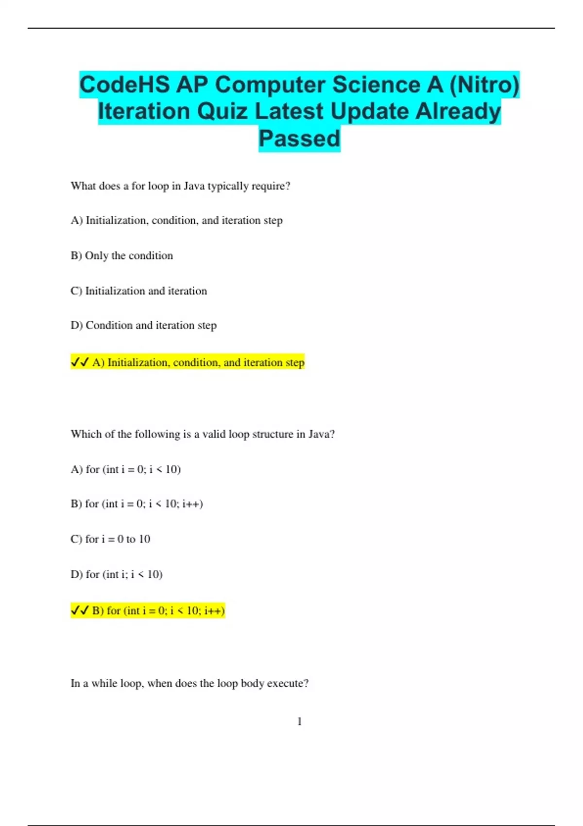 Iteration Quiz Latest Update Already