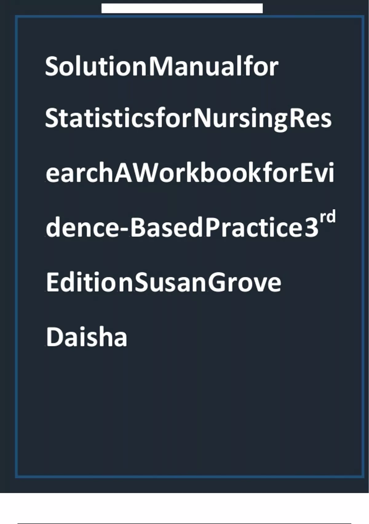 Test Bank - for Statistics for Nursing Research A Workbook for Evidence-Based Practice 3rd Edition by Susan K. Grove, All Chapters | Complete Guide A+ Test Bank - for Statistics for Nursing Research A Workbook for Evidence-Based Practice 3rd Edition by Susan K. Grove, All Chapters | Complete Guide A+ Test Bank - for Statistics for Nursing Research A Workbook for Evidence-Based Practice 3rd Edition by Susan K. Grove, All Chapters | Complete Guide A+ Test Bank - for Statistics for Nursing Research A Workbook for Evidence-Based Practice 3rd Edition by Susan K. Grove, All Chapters | Complete Guide A+ Test Bank - for Statistics for Nursing Research A Workbook for Evidence-Based Practice 3rd Edition by Susan K. Grove, All Chapters | Complete Guide A+