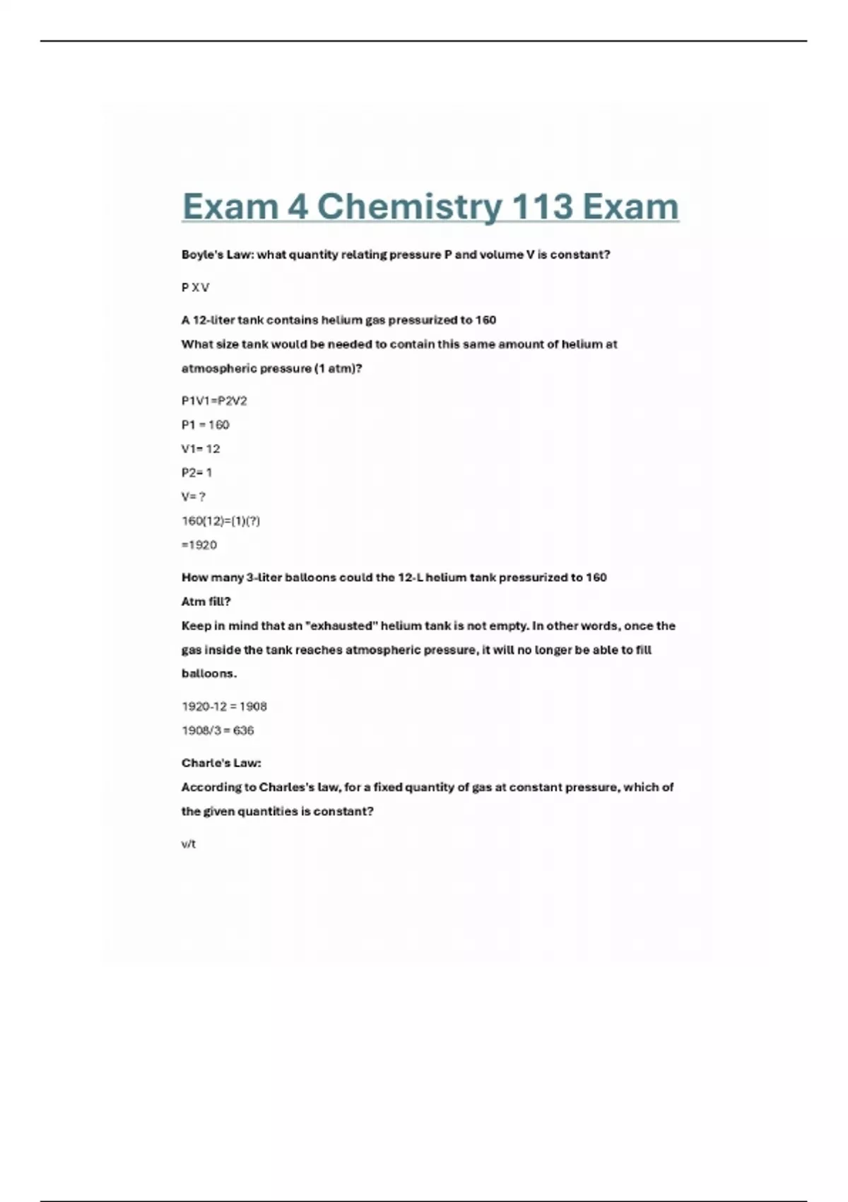 Exam 4 Chemistry 113 Exam