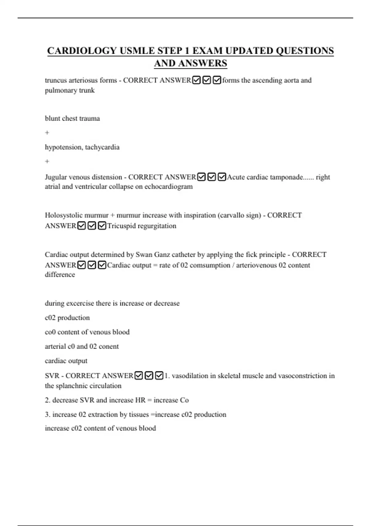 Sv02 - CORRECT ANSWER✅✅✅CVP decrease