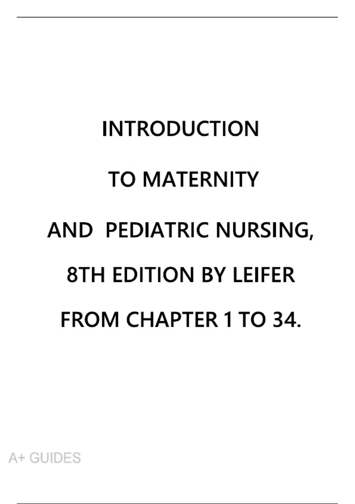 TEST BANK FOR INTRODUCTION TO MATERNITY AND PEDIATRIC NURSING, 8TH EDITION BY LEIFER (COMPLETE) CHAPTER 1 TO 34