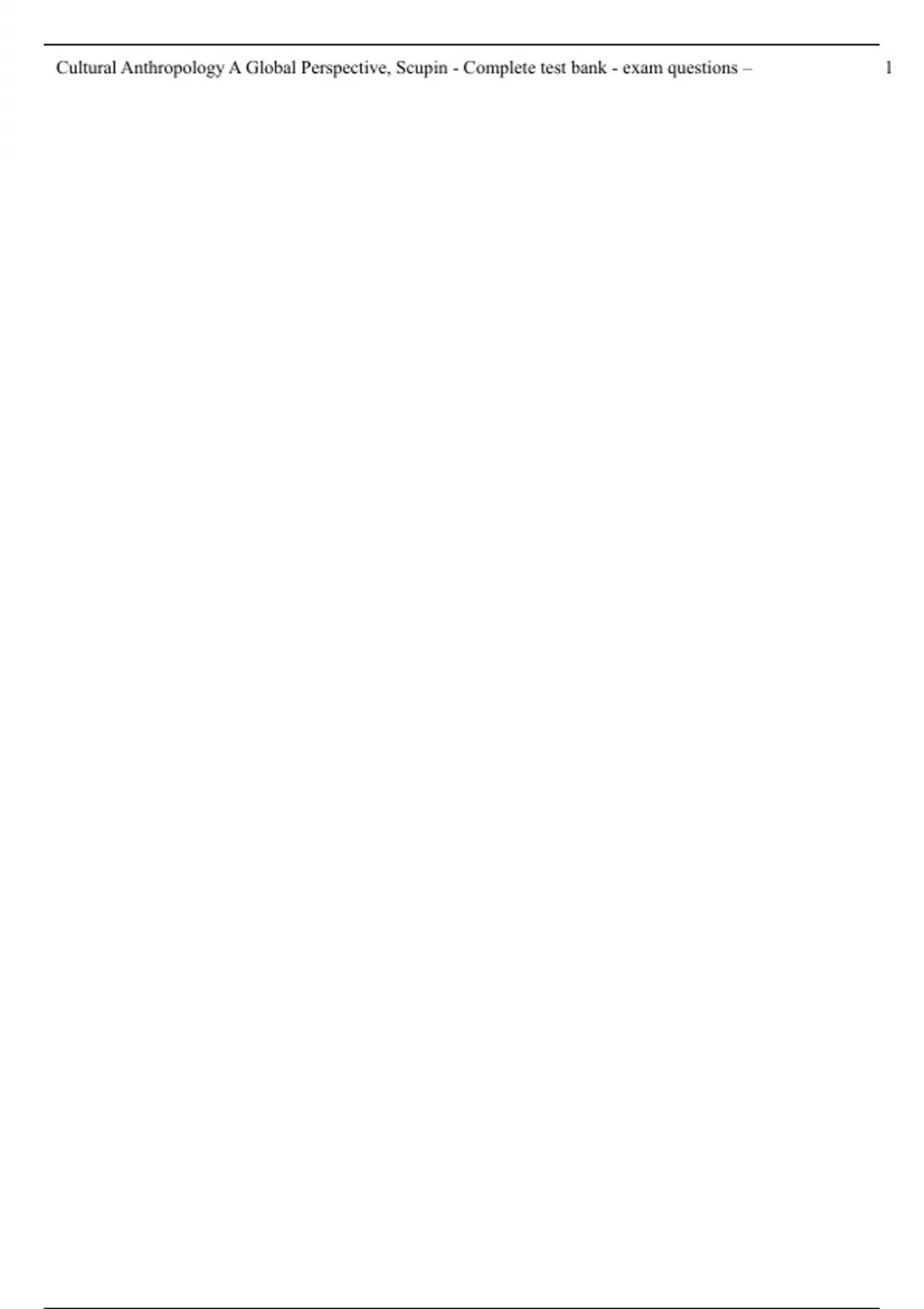 Test Bank - Cultural Anthropology A Global Perspective, Scupin