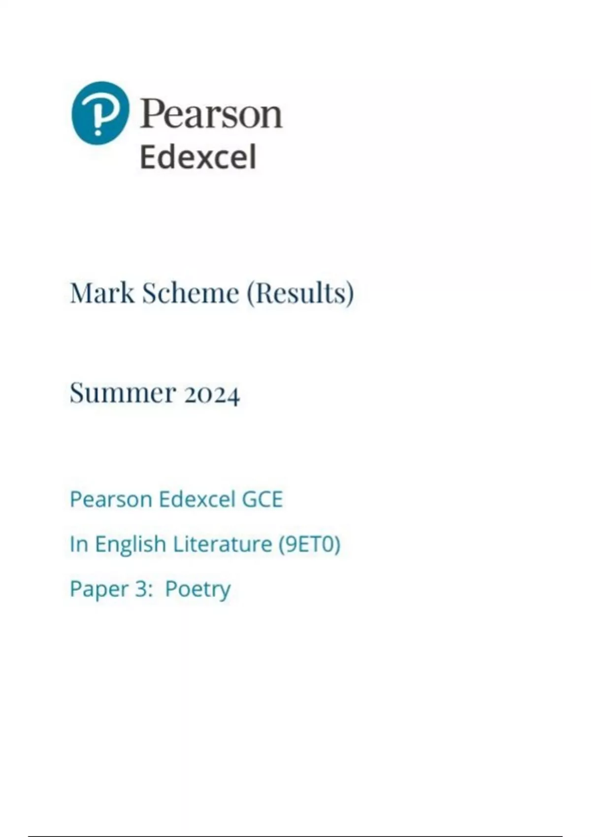PEARSON EDEXCEL A LEVEL ENGLISH LITERATURE PAPER 3 JUNE 2024 FINAL MARK SCHEME
