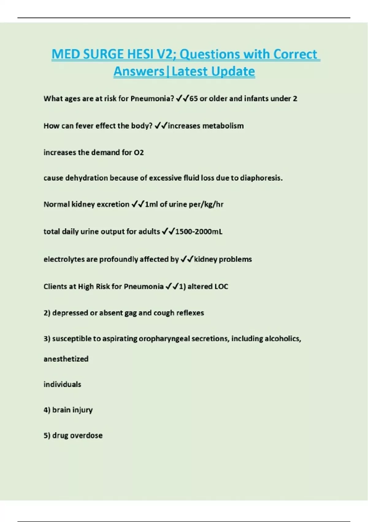 MED SURGE HESI V2; Questions with Correct Answers|Latest Update