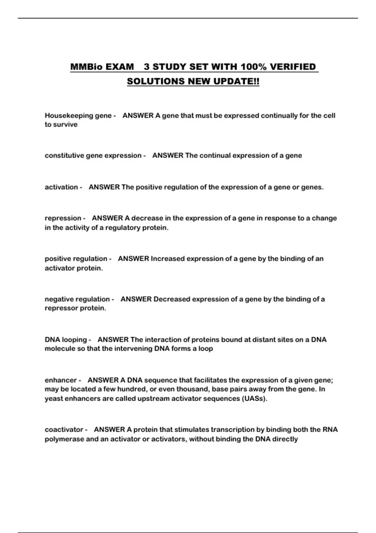 MMBio EXAM 3 STUDY SET WITH 100% VERIFIED