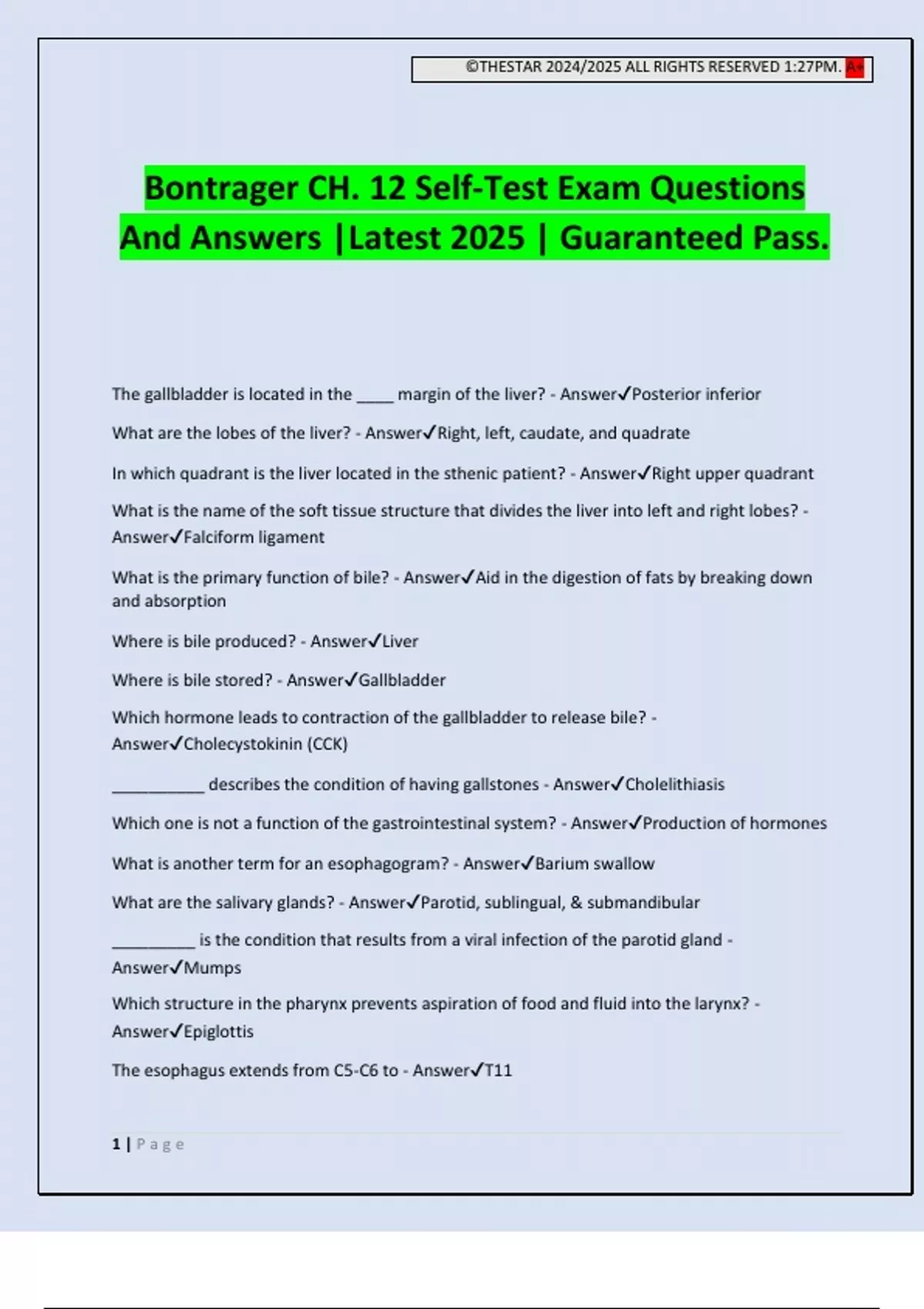 The gallbladder is located in the ____ margin of the liver? - Answer✔Posterior inferior