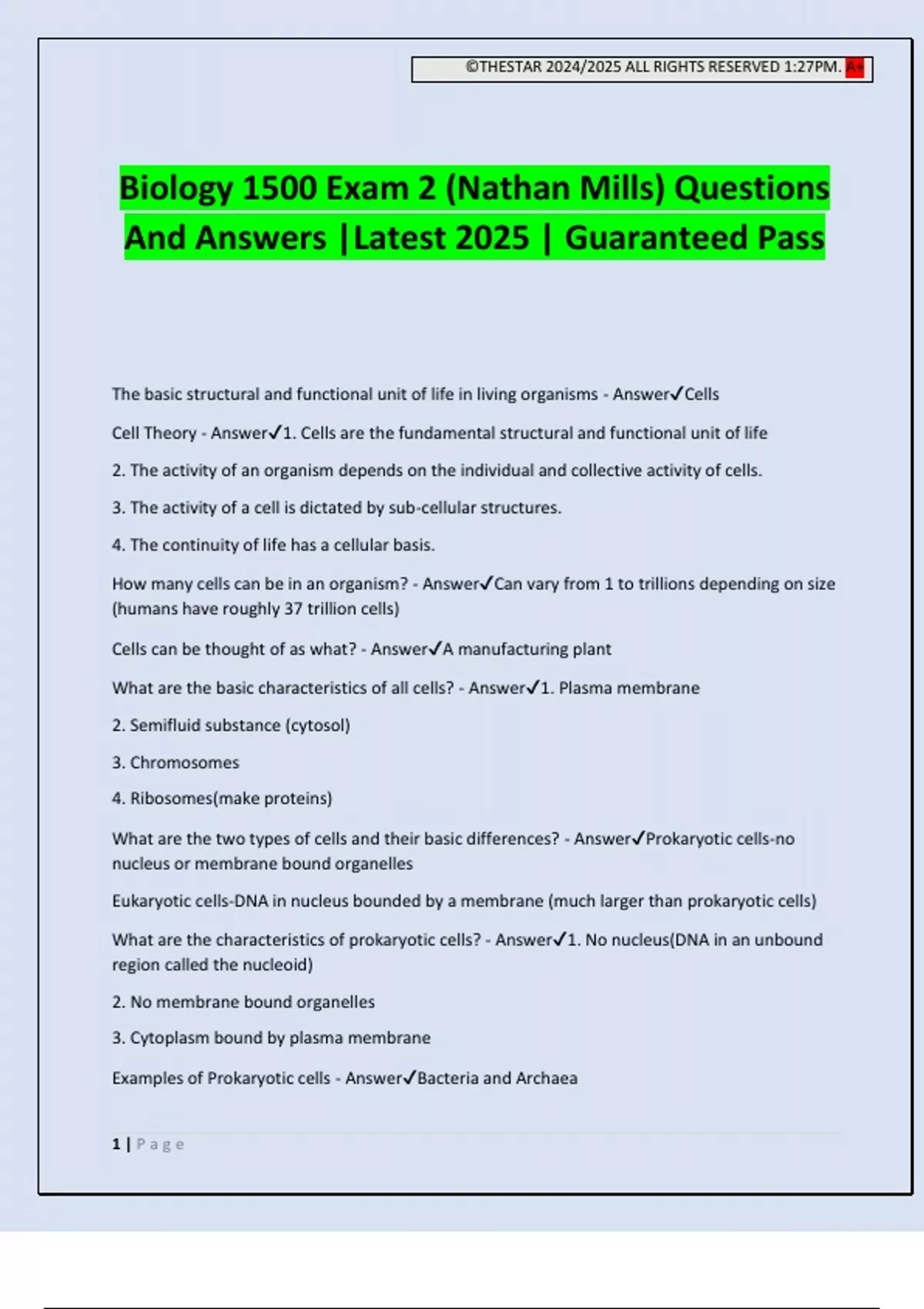 Cell Theory - Answer✔1. Cells are the fundamental structural and functional unit of life