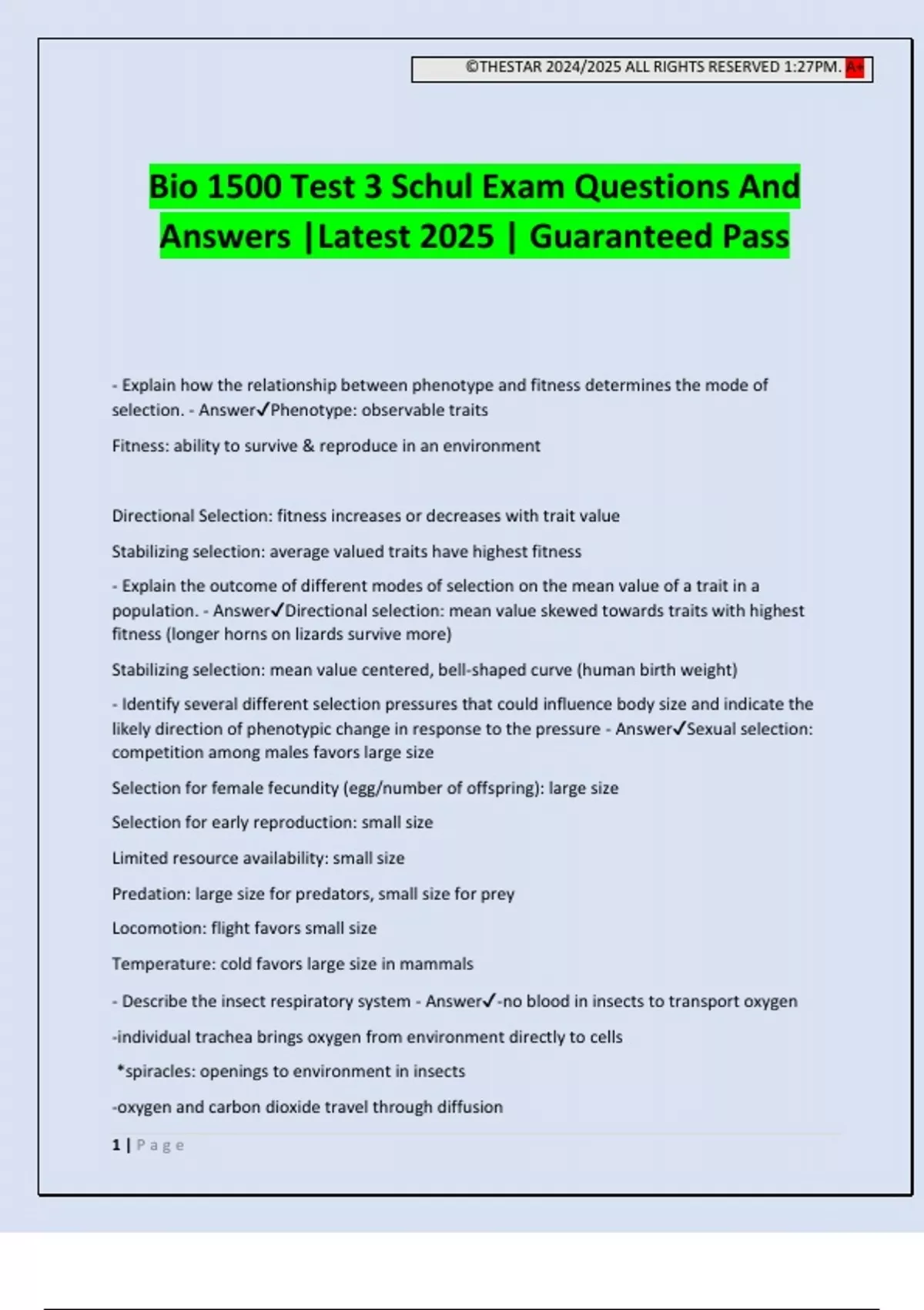 selection. - Answer✔Phenotype: observable traits