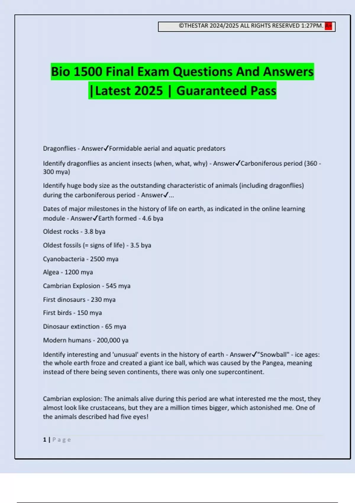 Bio 1500 Final Exam Questions And Answers
