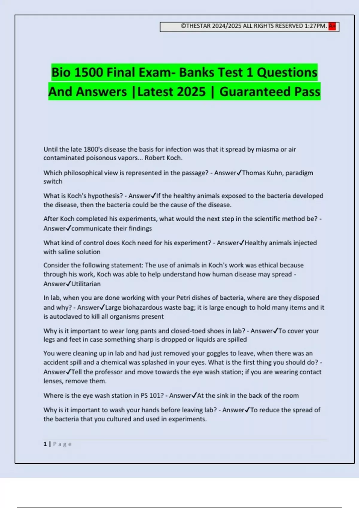 Bio 1500 Final Exam- Banks Test 1 Questions