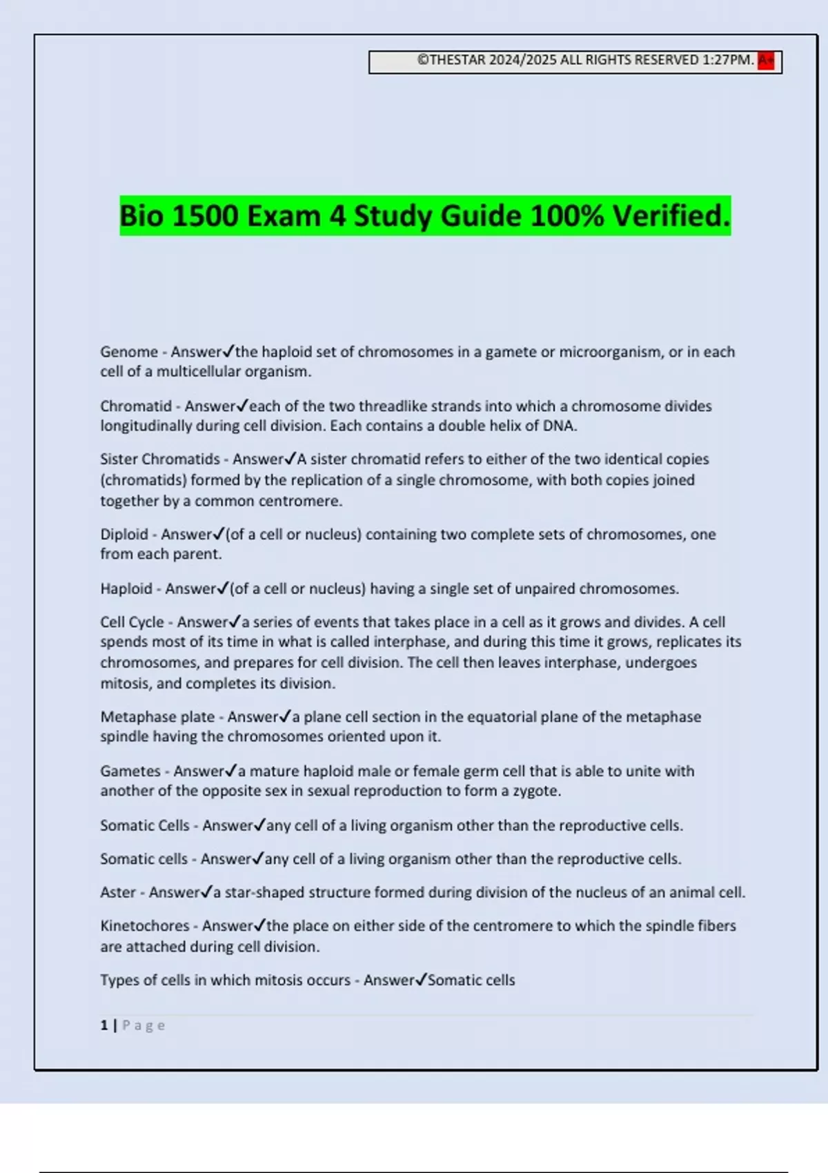 Bio 1500 Exam 4 Study Guide 100% Verified.