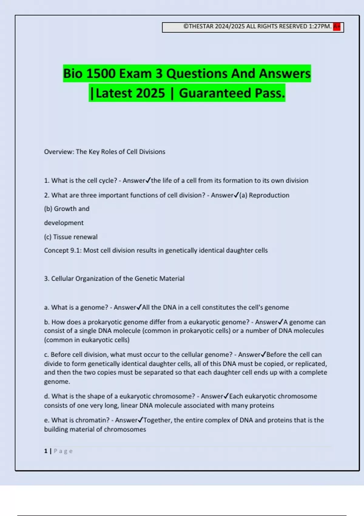 b. Why is it important that chromosomes replicate prior to cell division? - Answer✔so that an