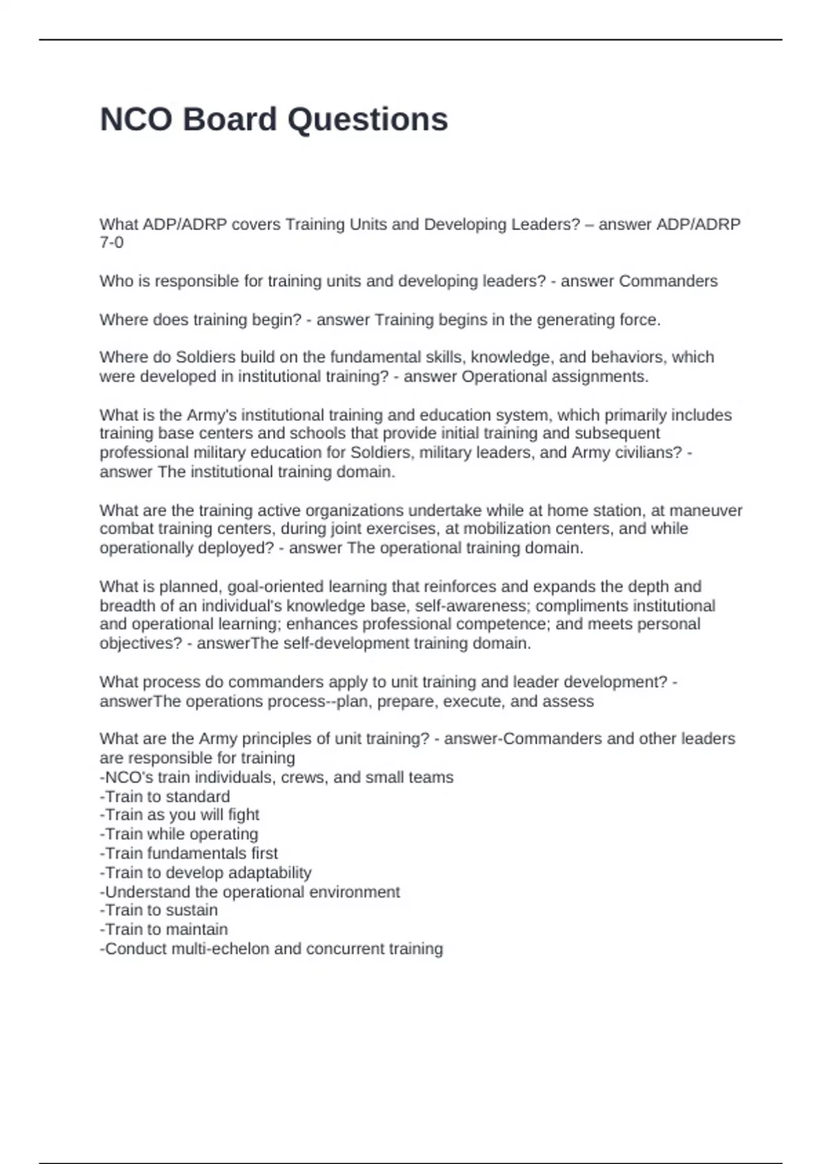 What are the Army principles of unit training? - answer-Commanders and other leaders