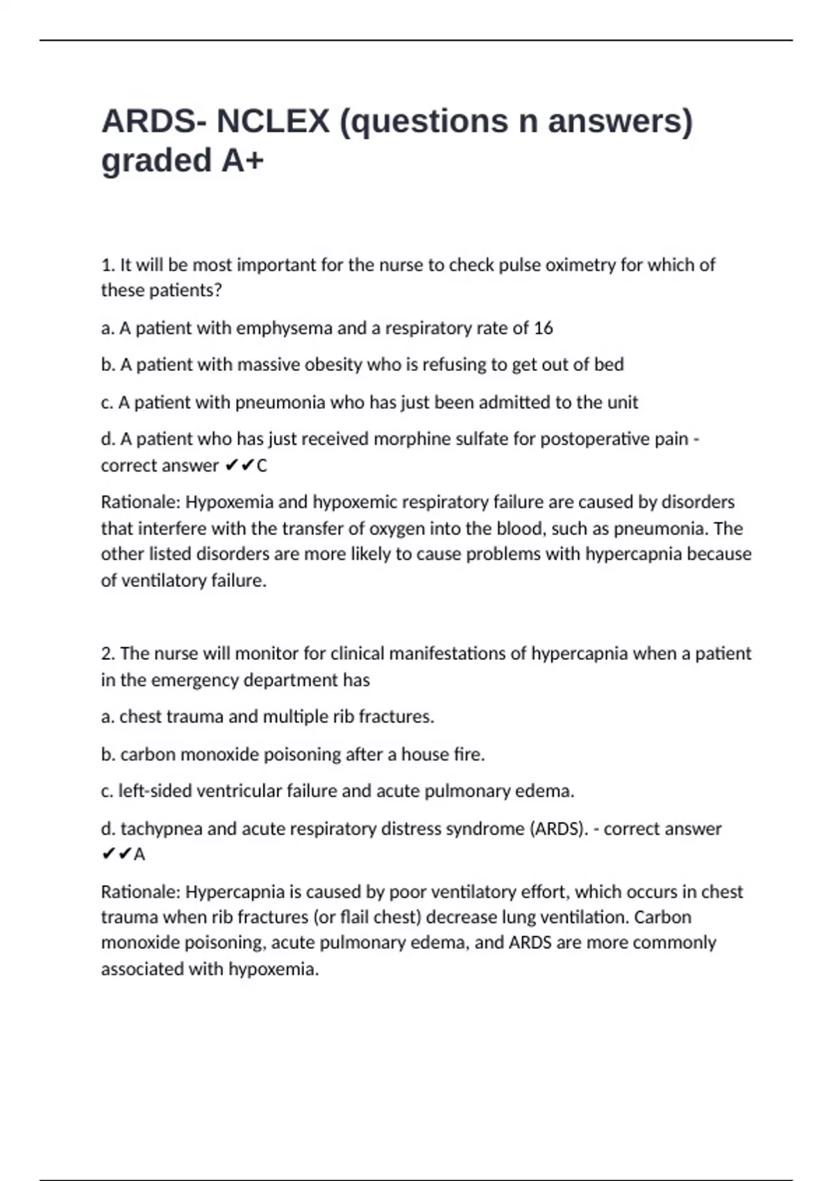 2. The nurse will monitor for clinical manifestations of hypercapnia when a patient