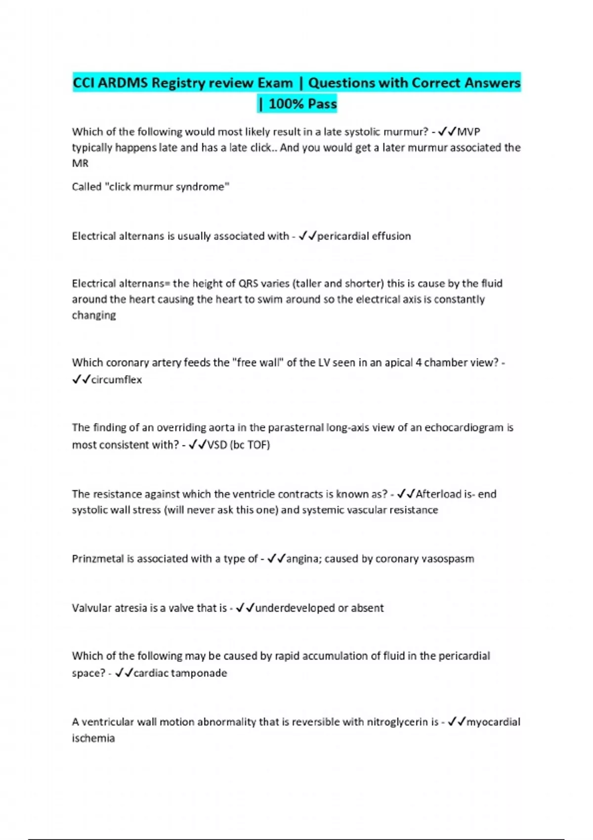 CCI ARDMS Registry review Exam | Questions with Correct Answers | 100% Pass