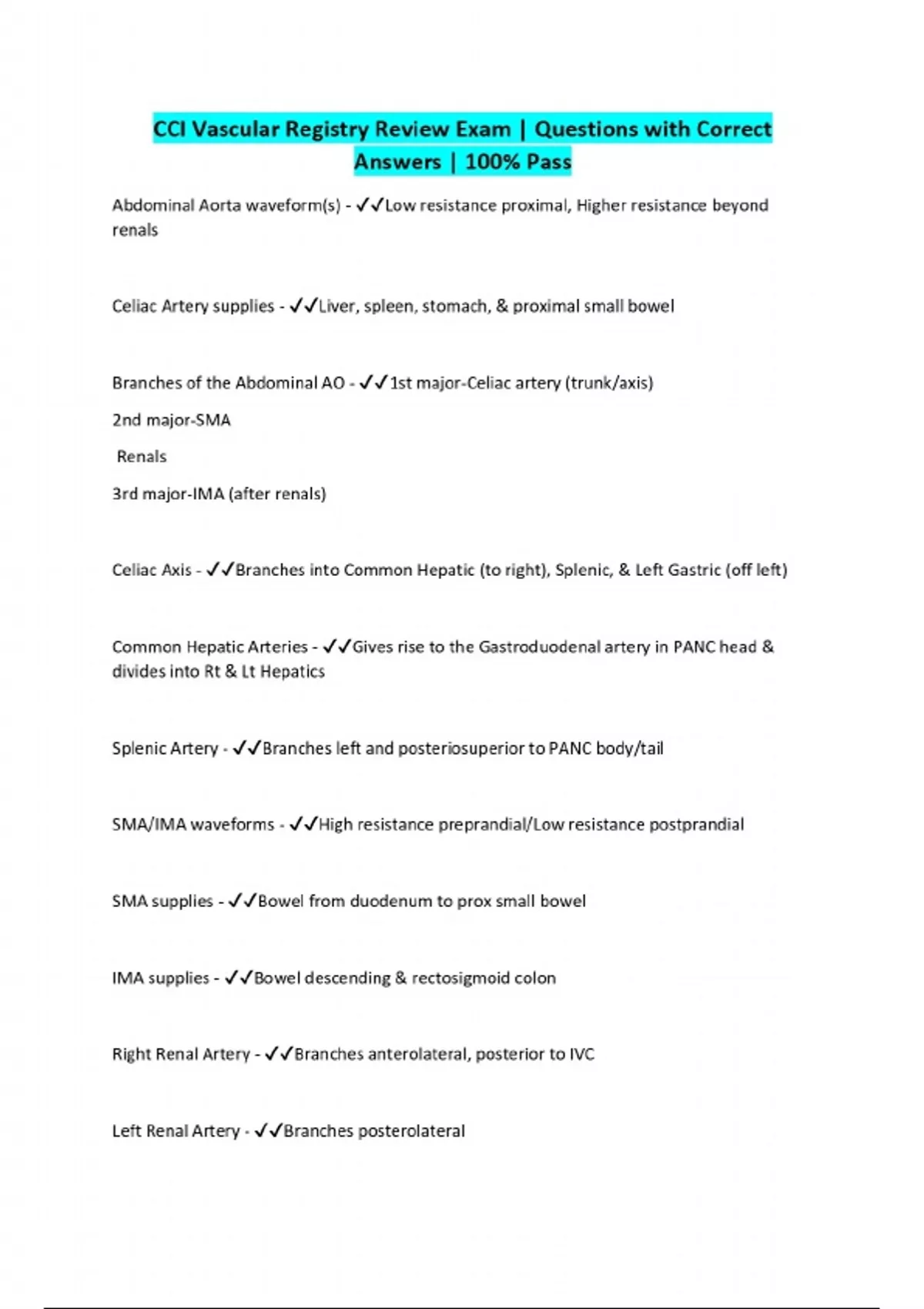 CCI Vascular Registry Review Exam | Questions with Correct Answers | 100% Pass