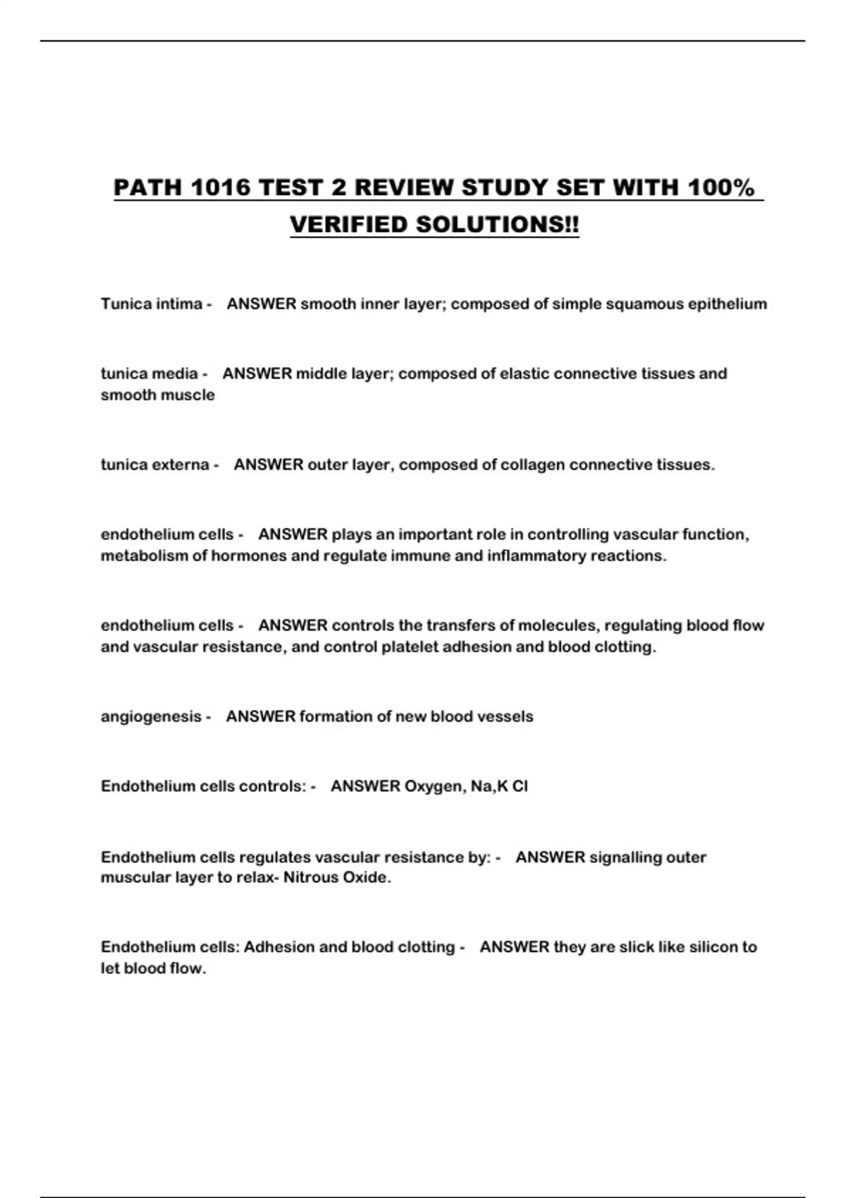 PATH 1016 TEST 2 REVIEW STUDY SET WITH 100% VERIFIED SOLUTIONS!!...