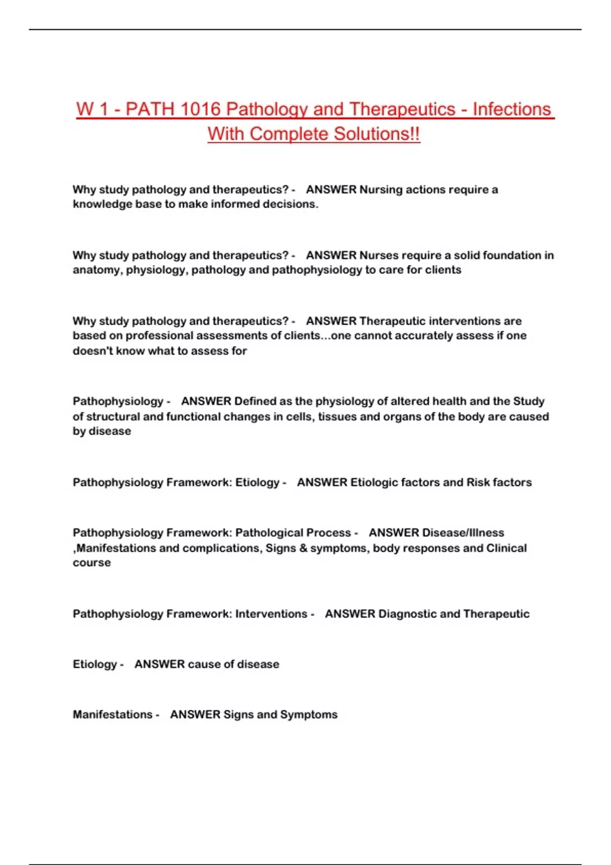 Mechanisms of Disease - ANSWER pathophysiology